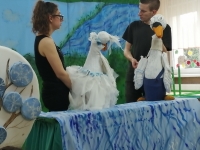 Aktorzy Teatru kukiełkowego z Białegostoku zaprezentowali przedszkolakom przedstawienie pt. ,,Brzydkie Kaczątko" Dzieci poznały i utrwalały nazwy pór roku oraz cechy charakterystyczne dla każdej z nich. Z ogromnym zainteresowaniem śledziły losy brzydkiego kaczątka. Brawami nagrodziły aktorów teatralnych.