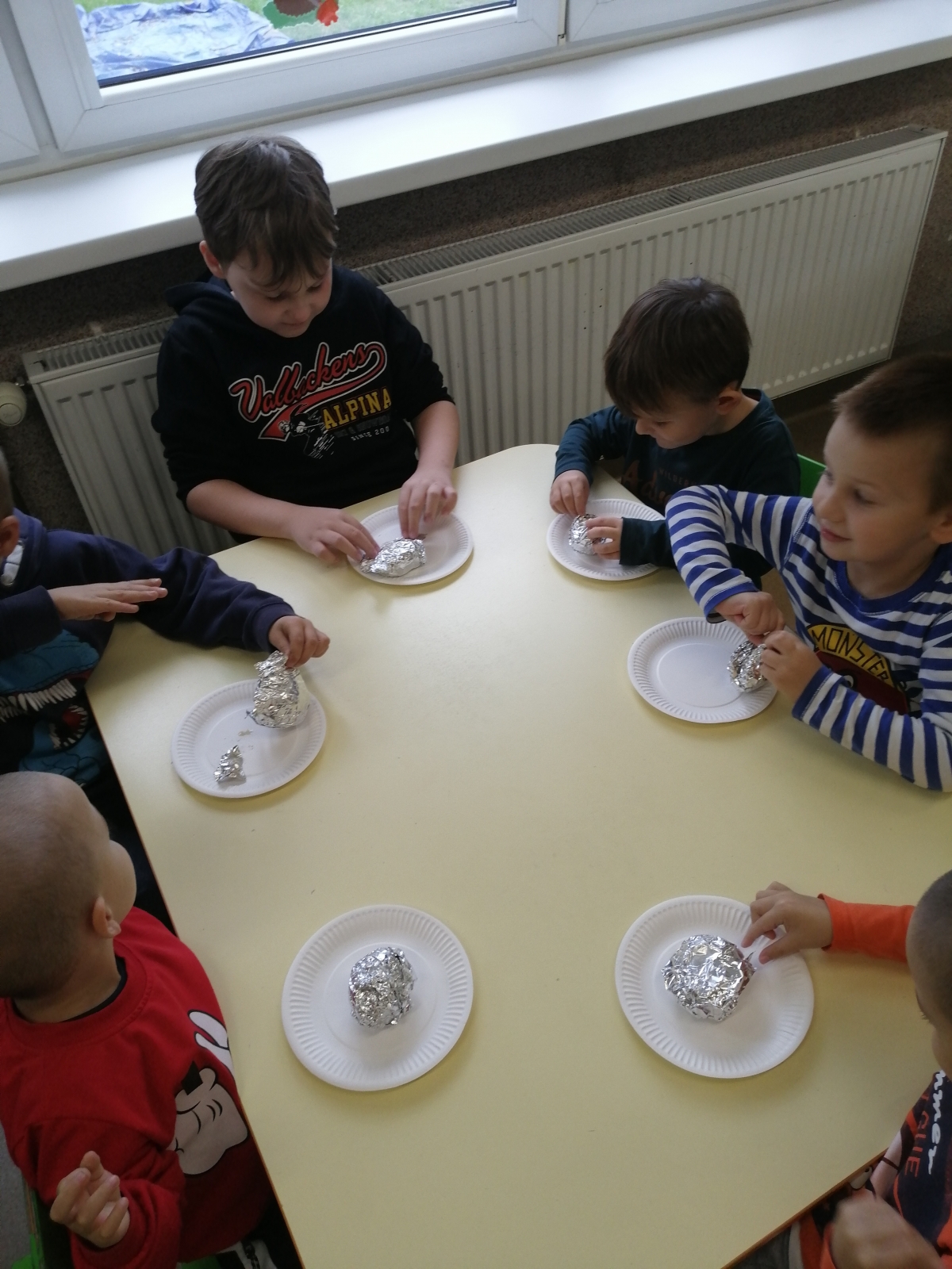 W Dniu pieczonego ziemniaka dzieci zapoznały się z elementem rolnictwa. Utrwaliły wiadomości na temat wydobywania ziemniaków, skosztowały pyszne ziemniaczki zrobione przez Panie kucharki. Ulepiły z plasteliny swoje kartofelki, niektóre z nich miały nawet koronę.