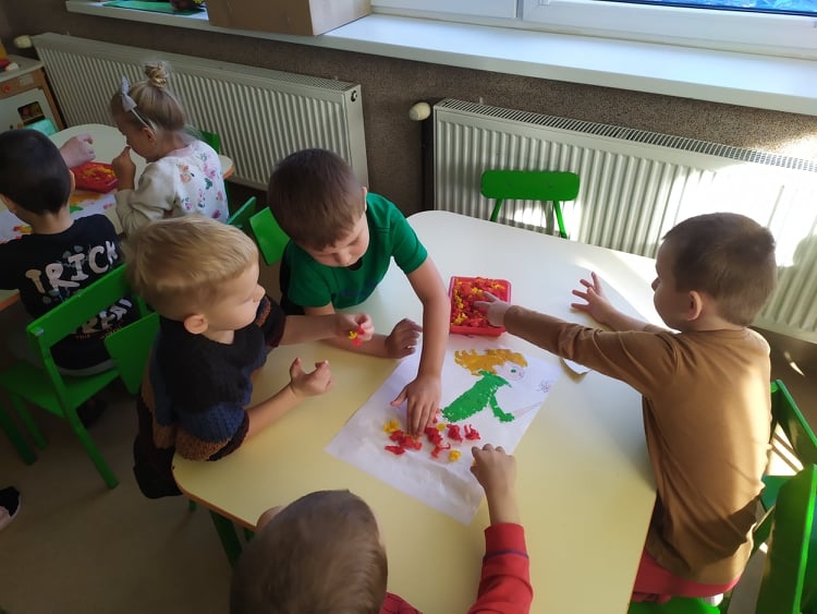 Wyobraźnia dzieci jest nieograniczona. Dzieci w tygodniu ozdabiały Panią Jesień. Wykorzystywały kolory, które występują w obecnej porze roku, współpracowały ze sobą. Bo w grupie siła…