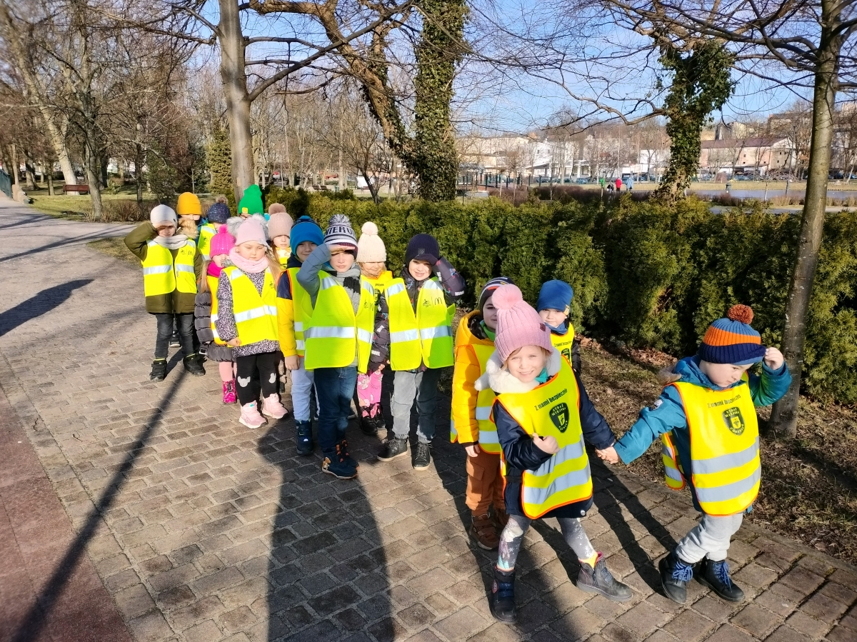 Nadchodząca wiosna to okazja do poszukania pierwszych jej zwiastunów. Korzystając z pięknej pogody zerówka poszła na spacer do parku. Pilnie rozglądała się szukając śpiewających ptaków, obserwując pięknej zieleni w parku.