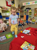 Dla dorosłego sprzątnięcie po zabawie oznacza zwykle pochowanie zabawek do pudeł, szuflad, wytarcie stolika, poskładanie ubrań itp. Dla dziecka – miejsce zabawek jest na podłodze, na dywanie, stoliku – tam gdzie ich używa, bo wtedy one SĄ. Maluchy nie lubią, gdy zabawki „znikają”. Trzylatek potrzebuje pomocy w zaplanowaniu, zorganizowaniu swojego działania, szczególnie, gdy bałagan jest duży. Możemy zaproponować pomoc np. poprzez zabawy w segregowanie. U nas wygląda to tak...