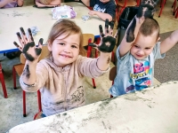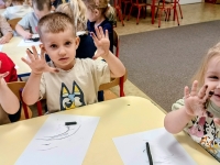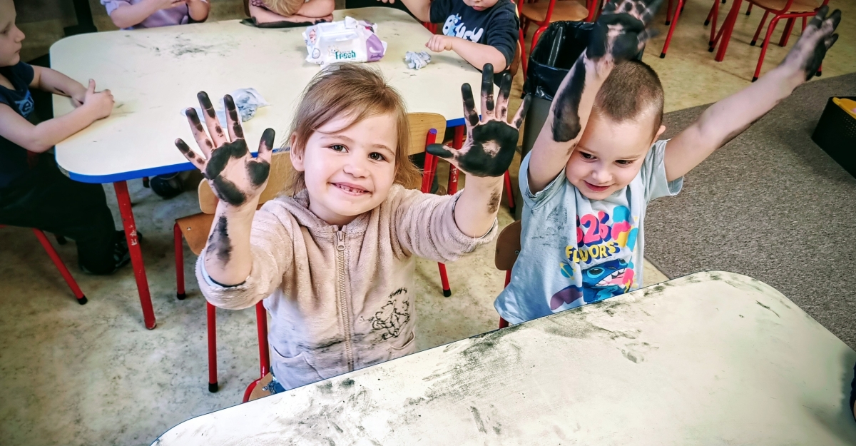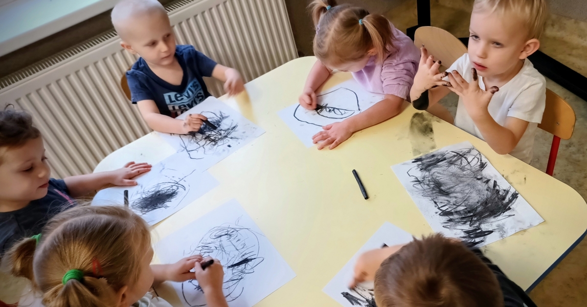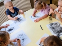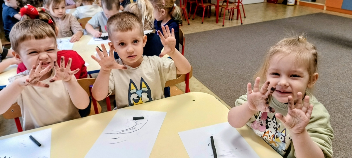 Podczas zajęć dzieci wysłuchały także opowiadania o Rozgniewanym Węgielku, które wprowadziło je w świat kopalni w ciekawy i przystępny sposób. Na zakończenie przedszkolaki wzięły udział w zajęciach plastycznych, podczas których malowały prawdziwym węglem, tworząc wyjątkowe, czarno-białe prace.