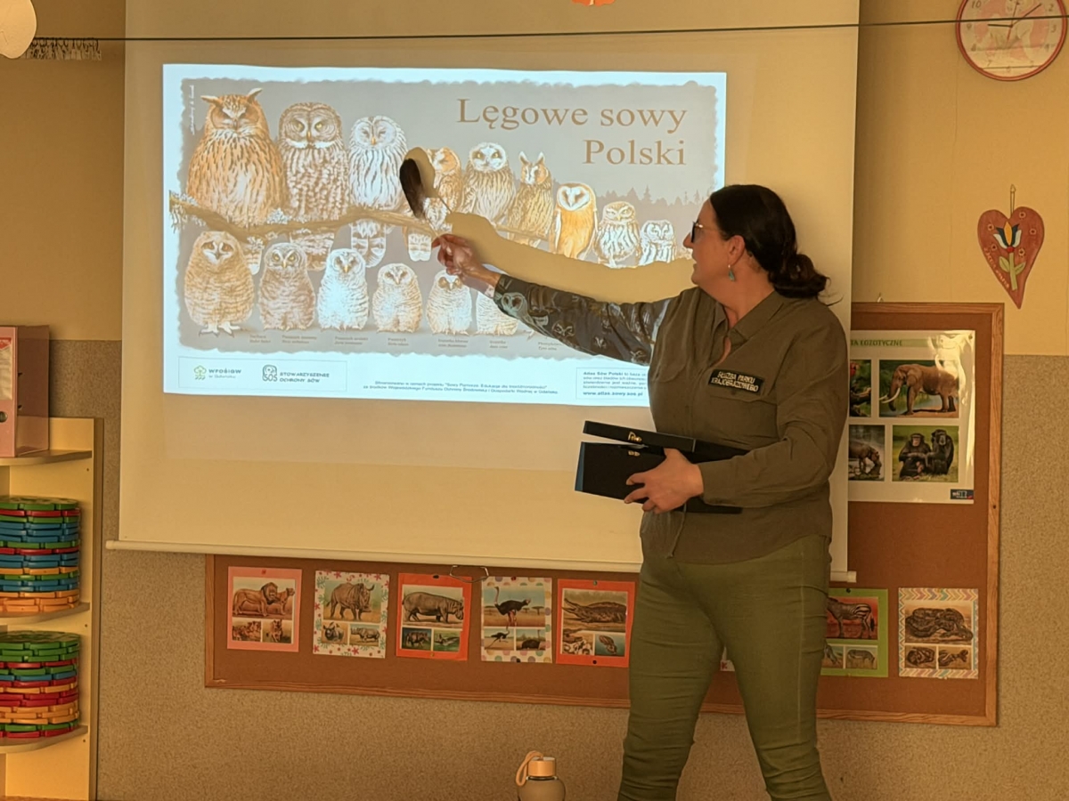 Zajęcia edukacyjno-przyrodnicze pod tytułem „Sowy bez tajemnic” poprowadziła pani Grażyna Jaszewska. Dzięki jej ogromnemu zaangażowaniu oraz pasji – jako przedstawicielki Zaborskiego Parku Krajobrazowego – dzieci miały okazję poznać fascynujący i wyjątkowy świat sów.