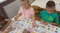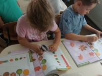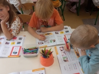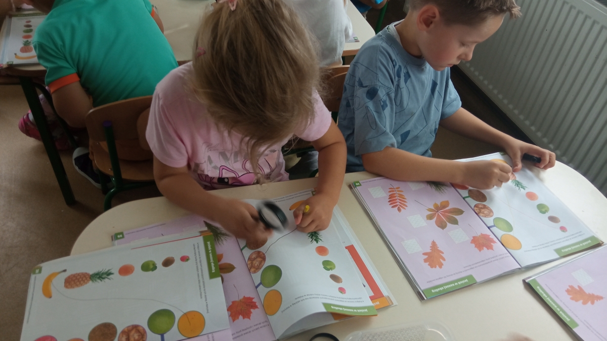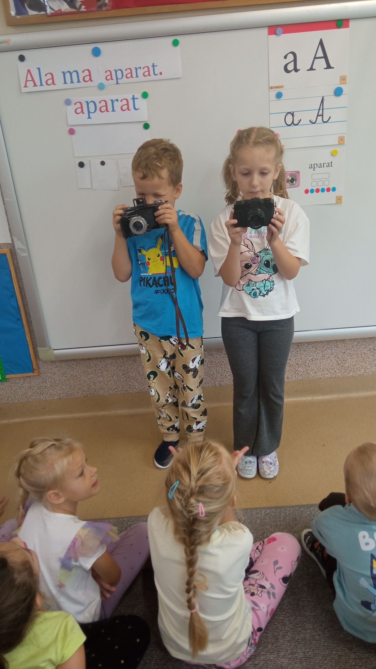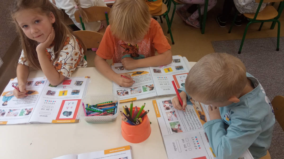 Sześciolatki poznały kolejne litery pisane a, ,A, na podstawie wyrazów Ala i aparat. Dzieci poznały efektywne sposoby nauki liter pisanych.. Gry takie jak „Poszukiwacze liter” czy „Zgadnij, jaka to litera?”, w których dzieci uczestniczą w zabawach związanych z rozpoznawaniem i nazwaniem liter, są nie tylko edukacyjne, ale także niezwykle angażujące. Przedszkolaki w naturalny sposób przyswajały nowe litery, co sprzyja w późniejszym procesie nauki czytania.