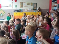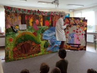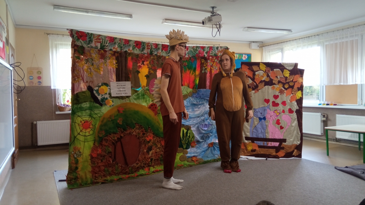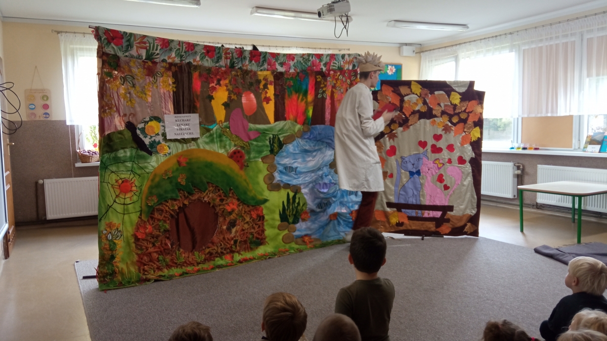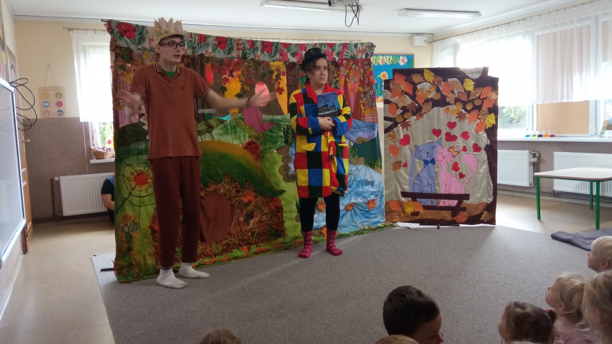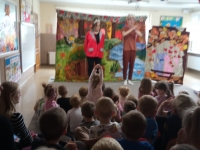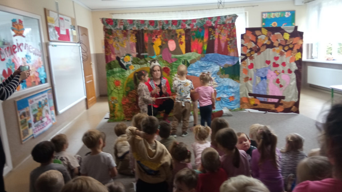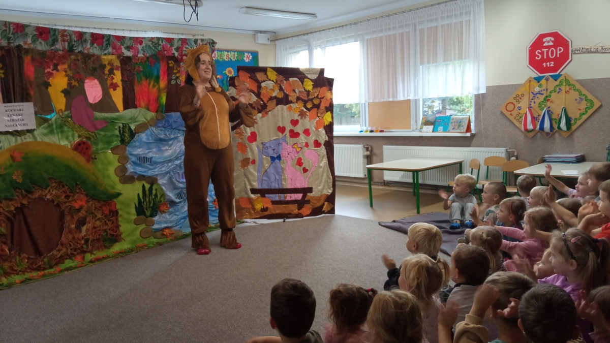 10 października wszystkie dzieci uczestniczyły w zabawnej opowieści o zarozumiałym jeżyku Pafnucym Pyszałce, który przechwalał się, że wszystko wie i na wszystkim się zna. Przedstawienie przybliżyło dzieciom różne zawody (m.in. lekarza, strażaka, nauczyciela), podkreślając przy tym, że ważna jest pokora i ciągłe poszerzanie swojej wiedzy i umiejętności.Teatrzyk pokazał również, ile przykrości i niebezpiecznych sytuacji może nieść ze sobą kłamstwo. A wszystko to było okraszone kolorową scenerią i sporą dawką humoru.Było to barwne, pełne humoru widowisko, które jednocześnie bawiło i uczyło!