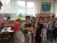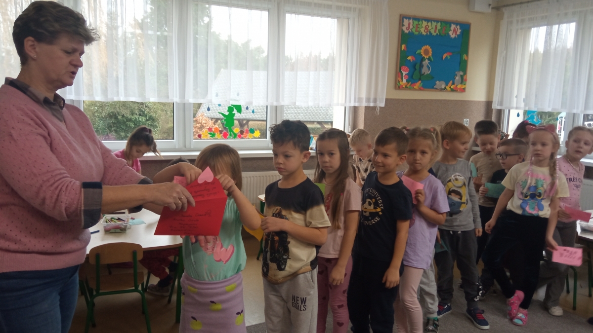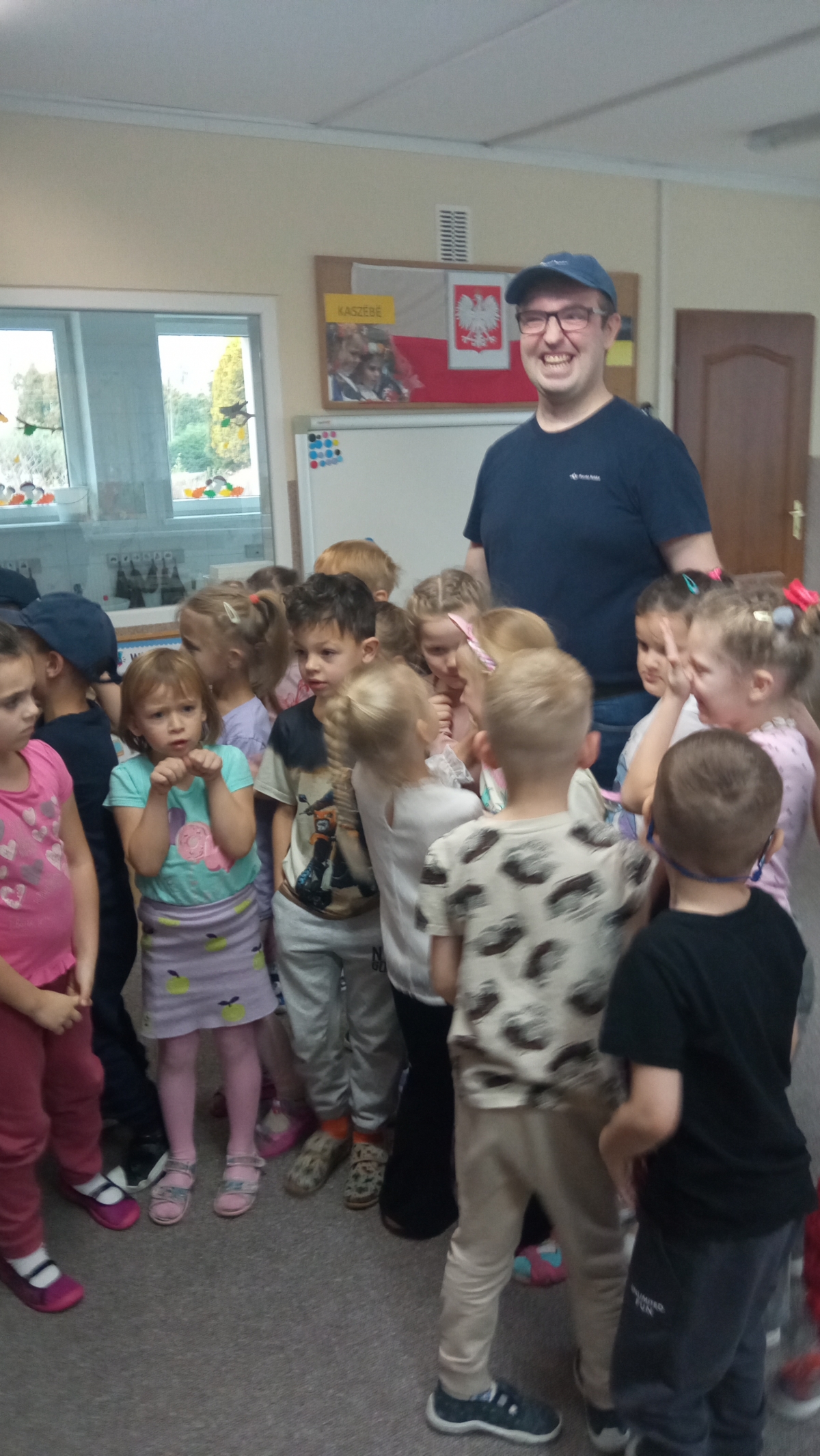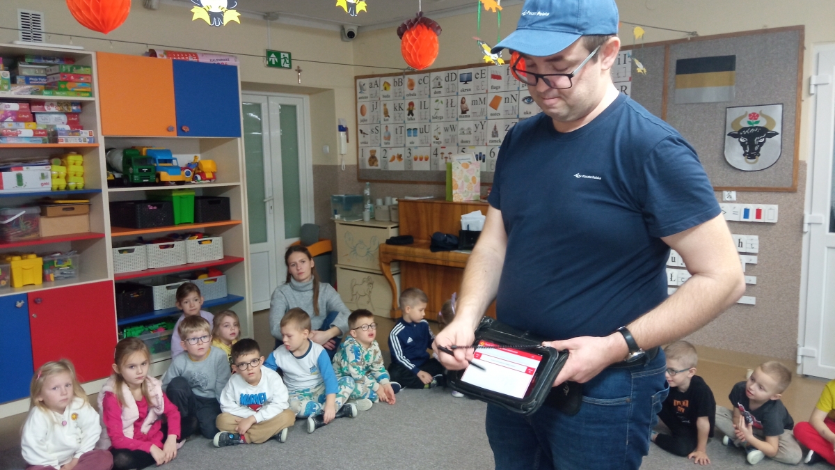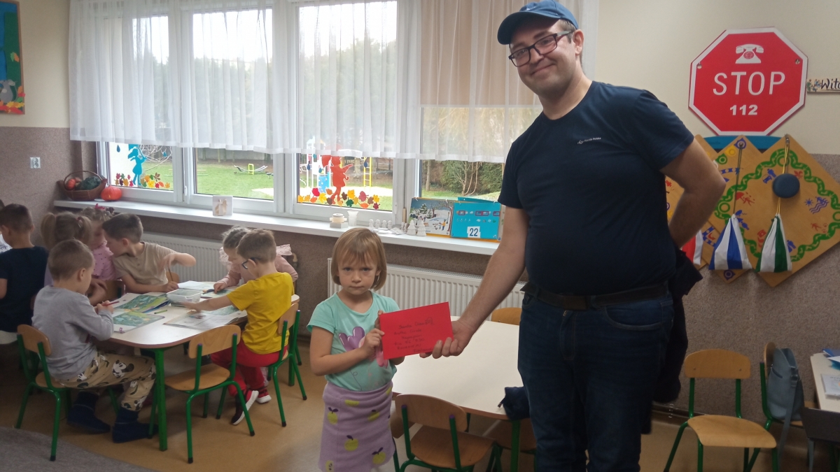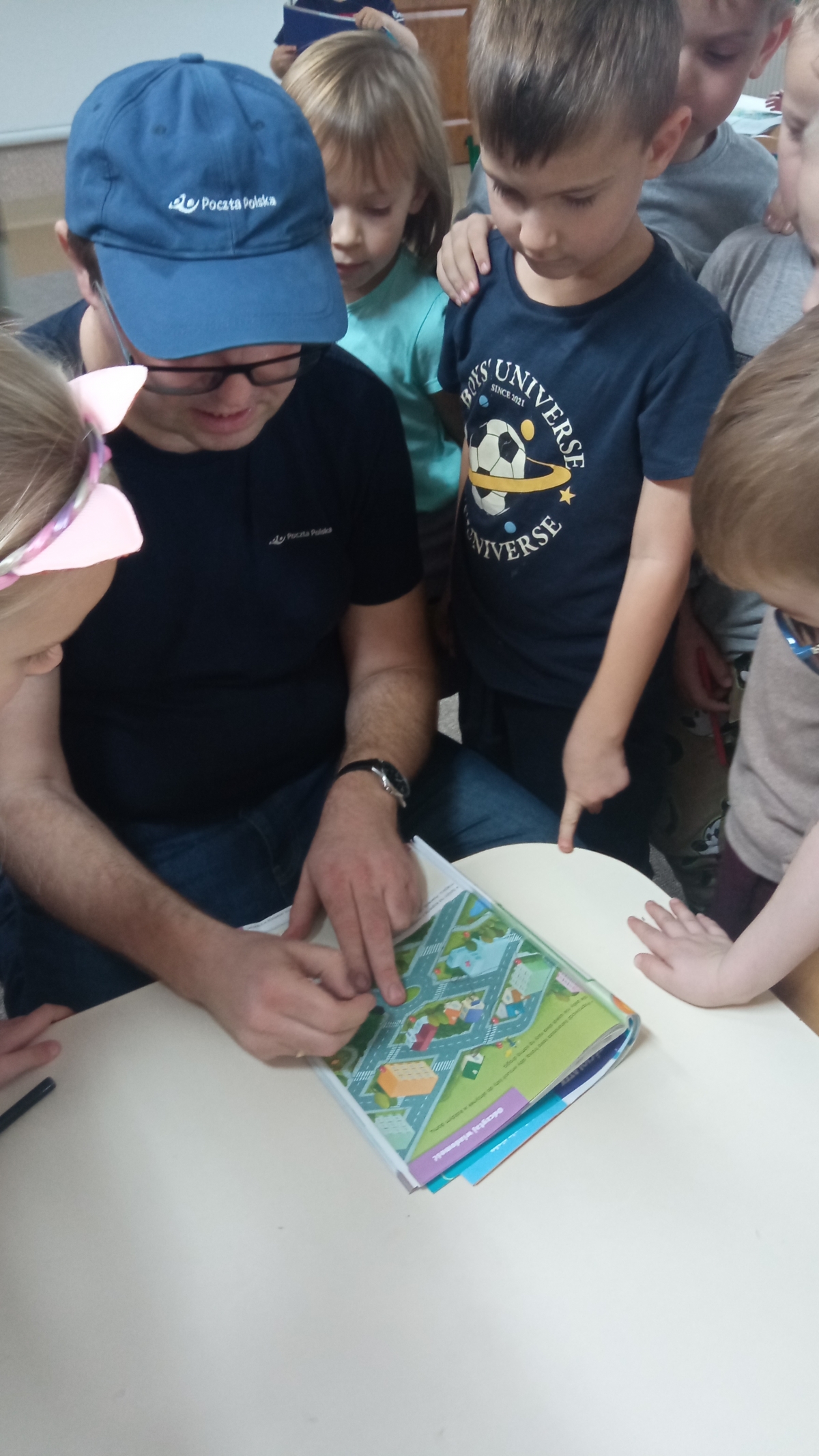 Dzisiaj przedszkole nasze odwiedził pracownik Urzędu Pocztowego w Chojnicach - Pan Mateusz. Zaprezentował dzieciom strój listonosza i logo poczty umieszczone na czapce. Następnie nasz gość opowiedział na czym polega praca listonosza, kto to jest nadawca, adresat, co to jest list polecony i wiele innych ciekawostek. Duże zainteresowanie wzbudziła ogromna torba, w której były listy. Każde dziecko mogło przymierzyć czapkę oraz torbę listonosza. Na zakończenie spotkania panu Mateuszowi dzieci przekazały list do świętego Mikołaja, który przygotowały wcześniej na zajęciach.