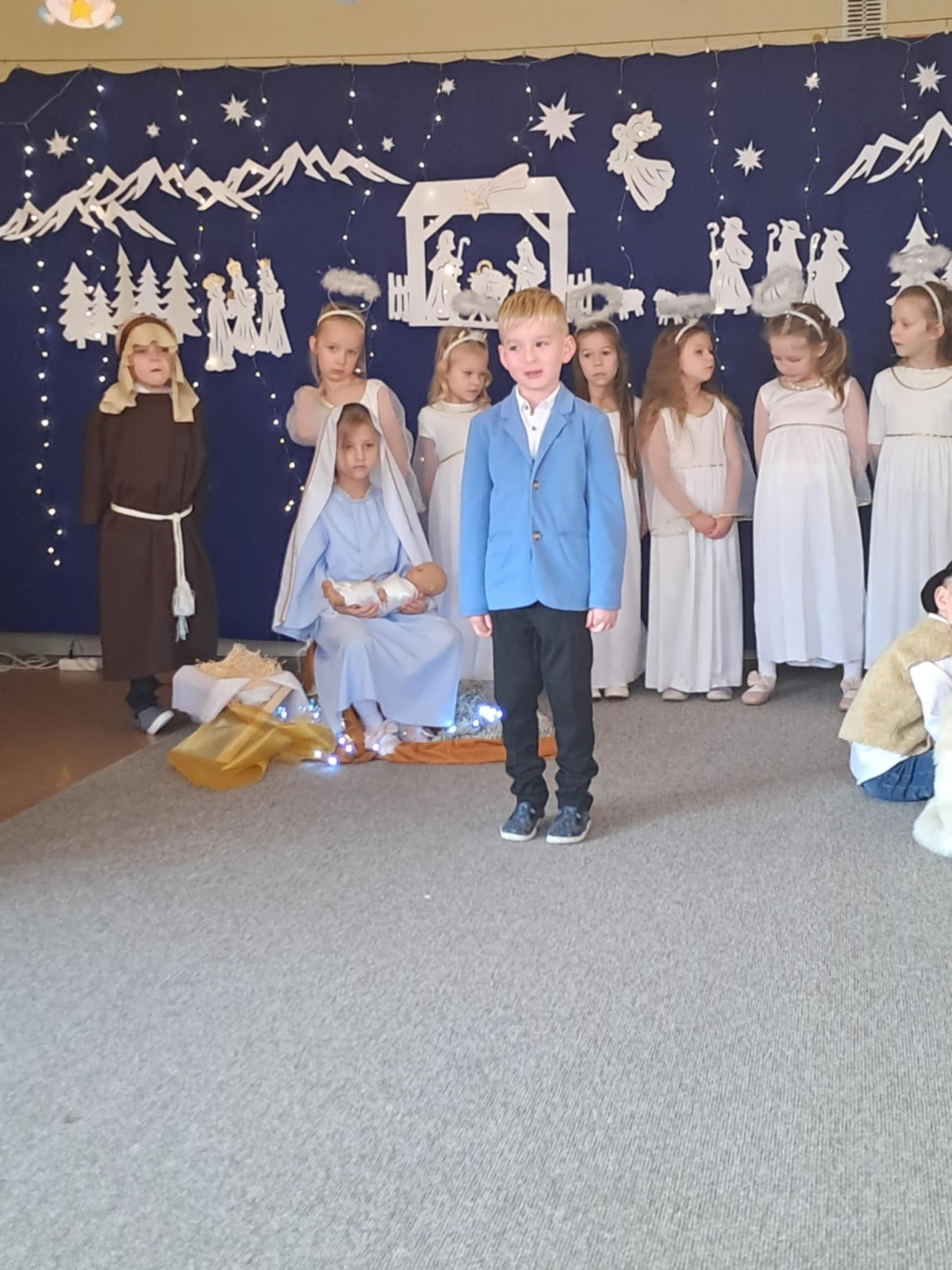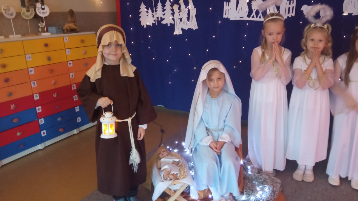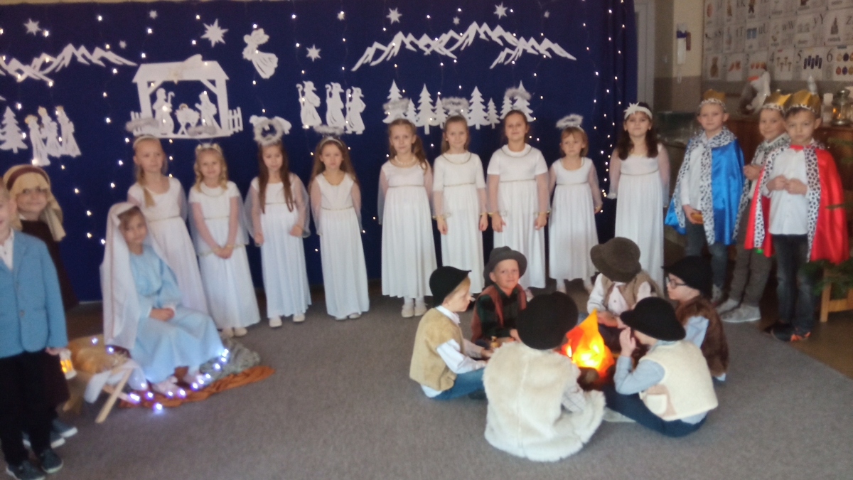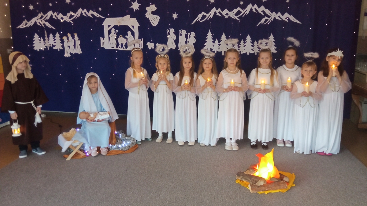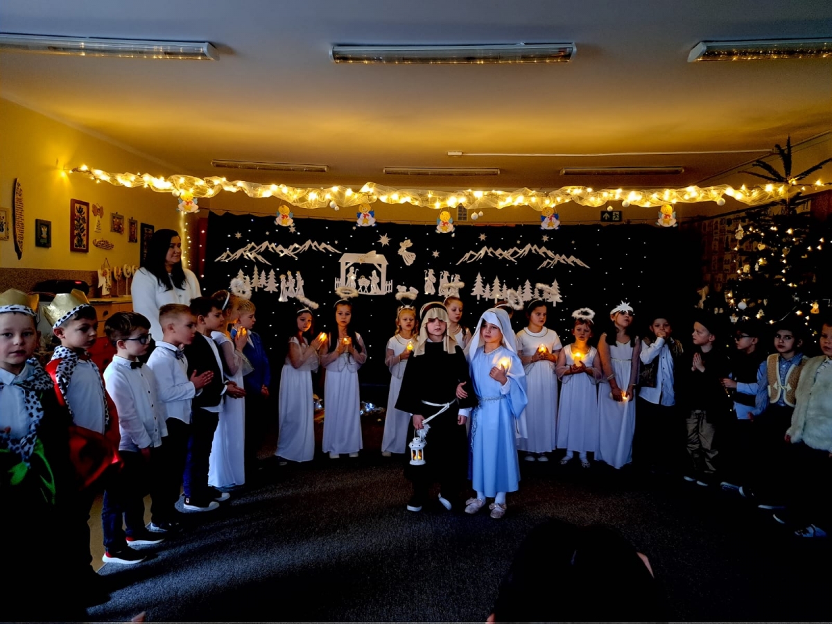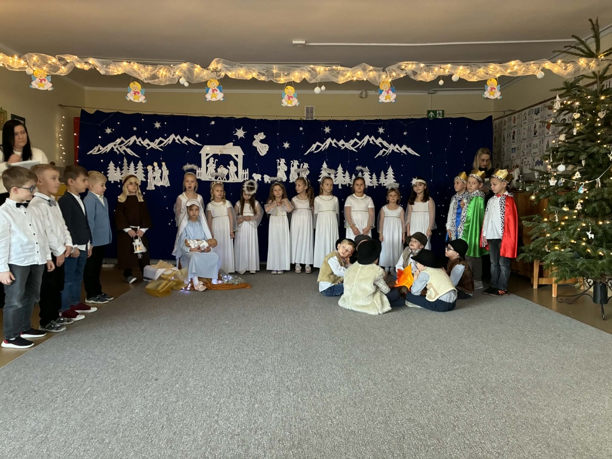Święta Bożego Narodzenia to wyjątkowy i magiczny czas, pełen radości i rodzinnych spotkań. 11 grudnia, Zuchy zaprezentowały rodzicom przygotowywane od kilku tygodni „Jasełka bożonarodzeniowe”. Podczas występu przedszkolaki przedstawiły swoją opowieść o narodzinach Jezusa, oprawioną wieloma kolędami i pastorałkami. Piękna scenografia nawiązująca do Betlejem oraz stroje przedszkolaków były idealnym dopełnieniem całego przedstawienia. Mali artyści z dużym przejęciem i zaangażowaniem wiernie odtwarzali swoje role, prezentowali umiejętności recytatorskie i wokalne. Za swój występ otrzymali gromkie brawa oraz wyrazy uznania i podziękowania. Wszystko to sprawiło, że w przedszkolu zapanował uroczysty i nastrojowy klimat.
