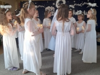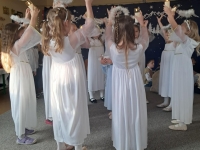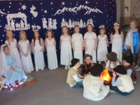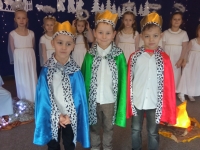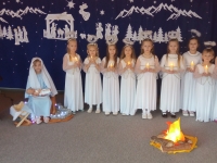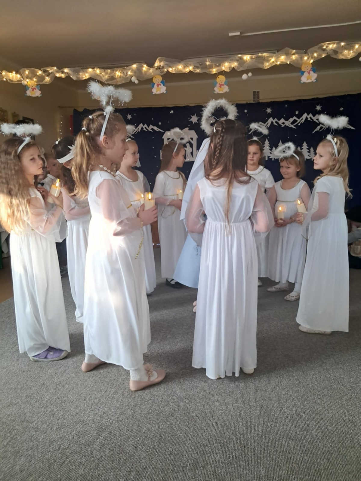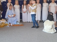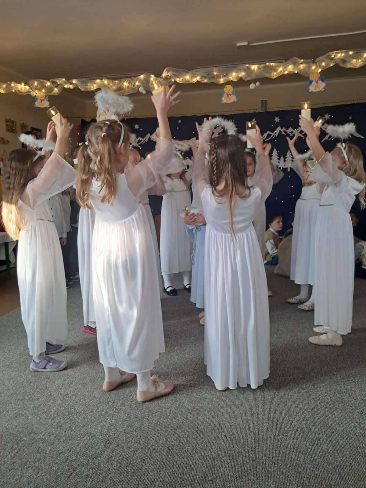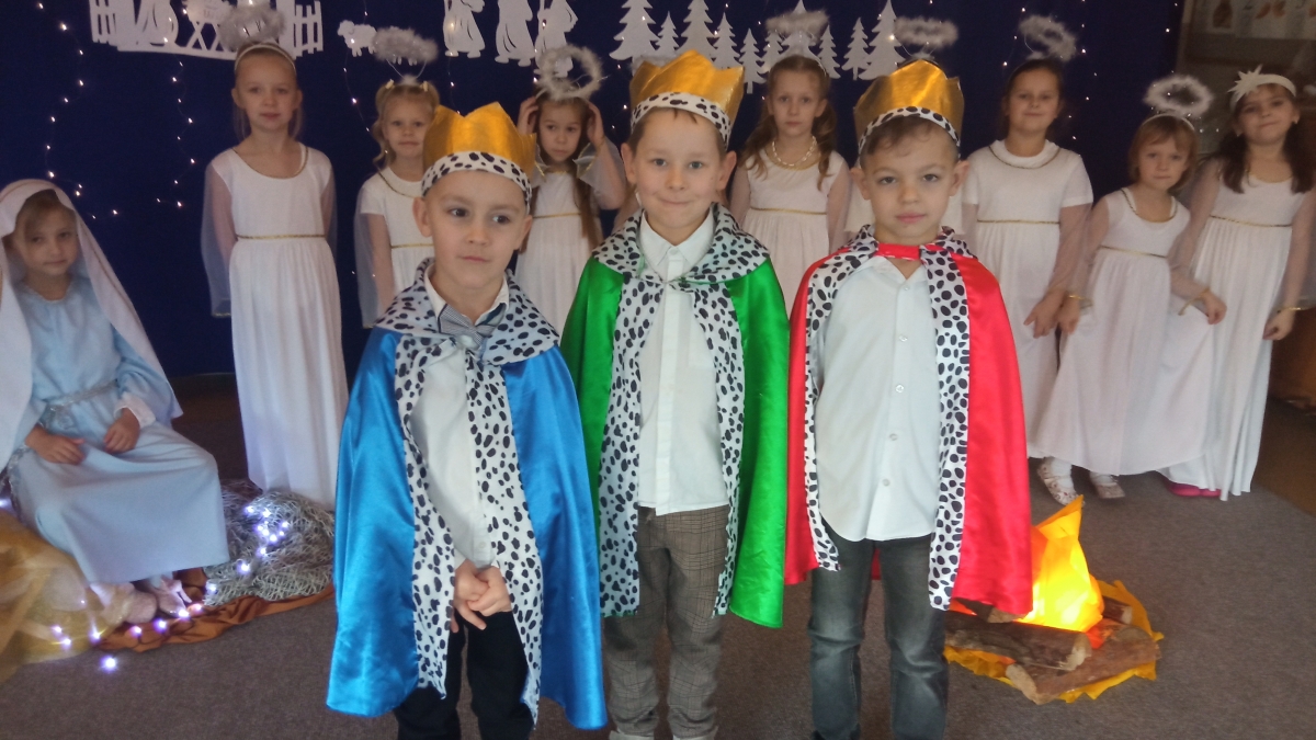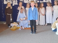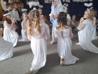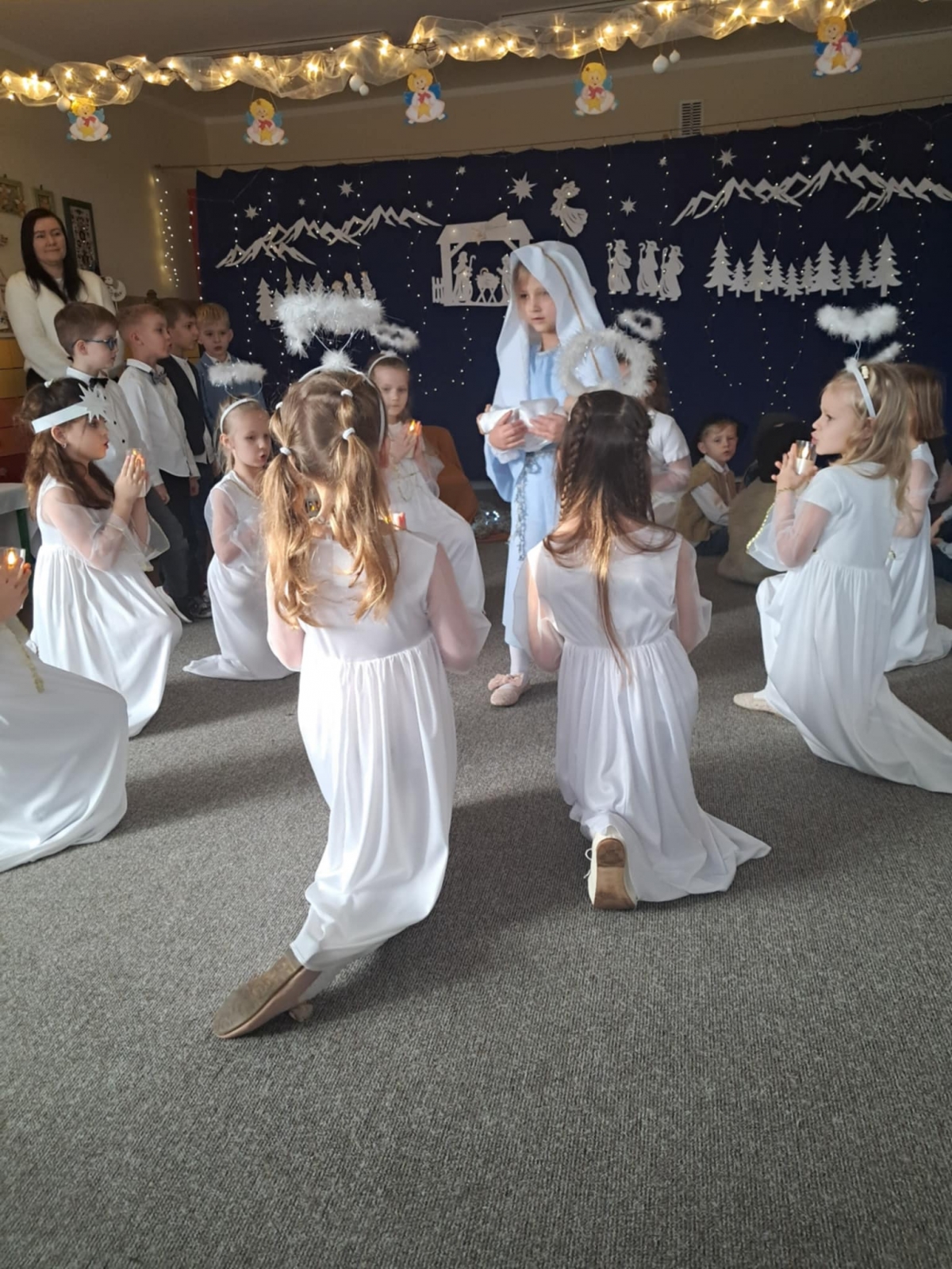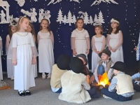 Święta Bożego Narodzenia to wyjątkowy i magiczny czas, pełen radości i rodzinnych spotkań. 11 grudnia, Zuchy zaprezentowały rodzicom przygotowywane od kilku tygodni „Jasełka bożonarodzeniowe”. Podczas występu przedszkolaki przedstawiły swoją opowieść o narodzinach Jezusa, oprawioną wieloma kolędami i pastorałkami. Piękna scenografia nawiązująca do Betlejem oraz stroje przedszkolaków były idealnym dopełnieniem całego przedstawienia. Mali artyści z dużym przejęciem i zaangażowaniem wiernie odtwarzali swoje role, prezentowali umiejętności recytatorskie i wokalne. Za swój występ otrzymali gromkie brawa oraz wyrazy uznania i podziękowania. Wszystko to sprawiło, że w przedszkolu zapanował uroczysty i nastrojowy klimat.