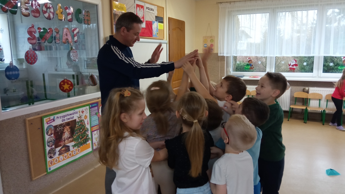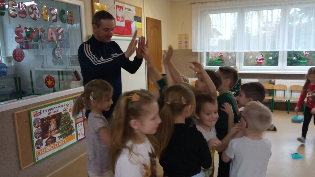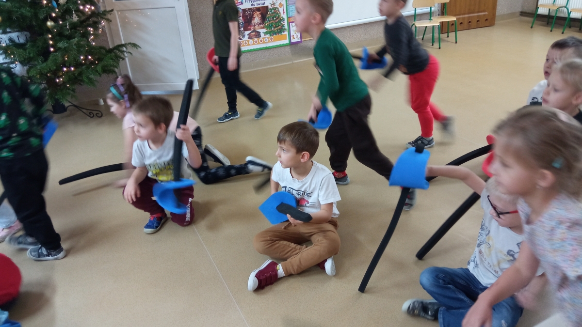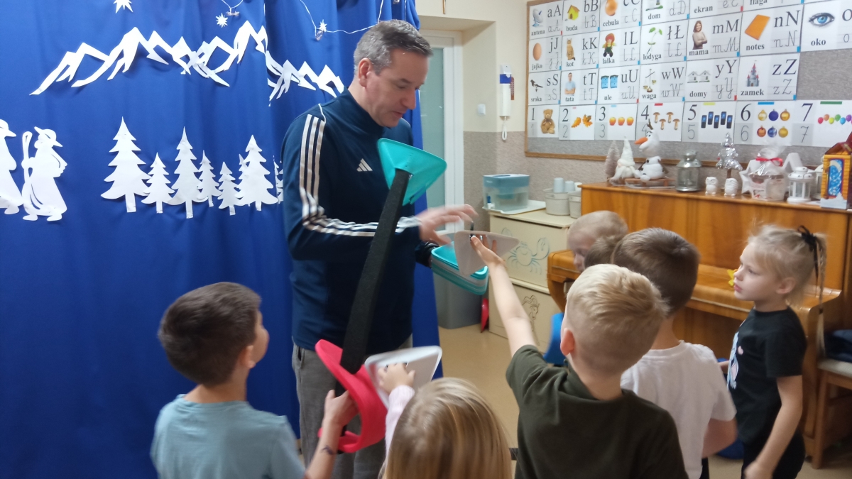Dnia 22 grudnia odwiedził nasze przedszkole po raz kolejny wyjątkowy gość - instruktor i trener szermierki pan Piotr Kuzas, który przedstawił dzieciom świat sportowej elegancji oraz precyzji. Zuchy z ogromnym zainteresowaniem wzięły aktywny udział we wszystkich zabawach sportowych, ambitnie realizowały sportowe zadania, które zaproponował trener szermierki.