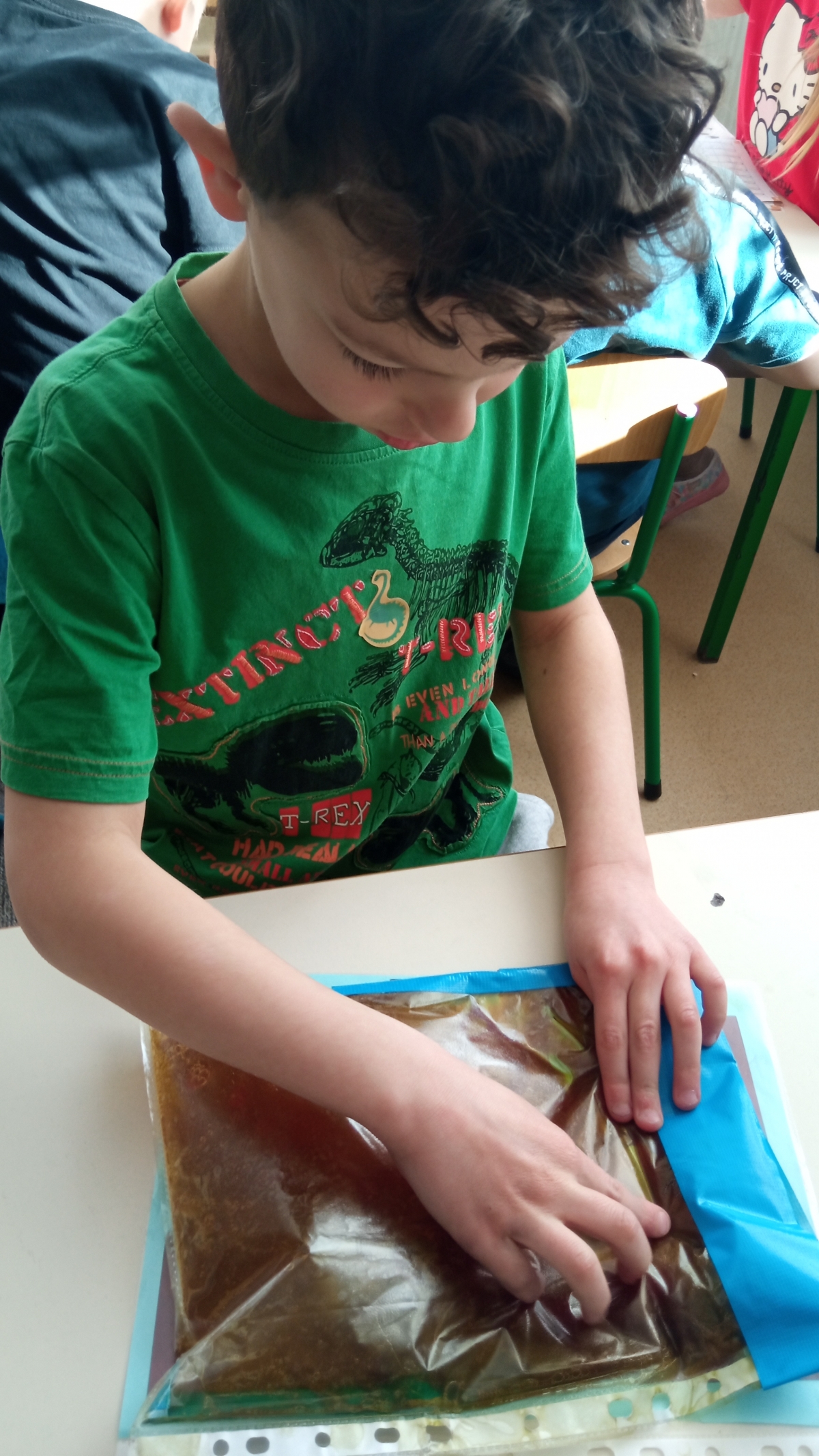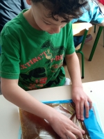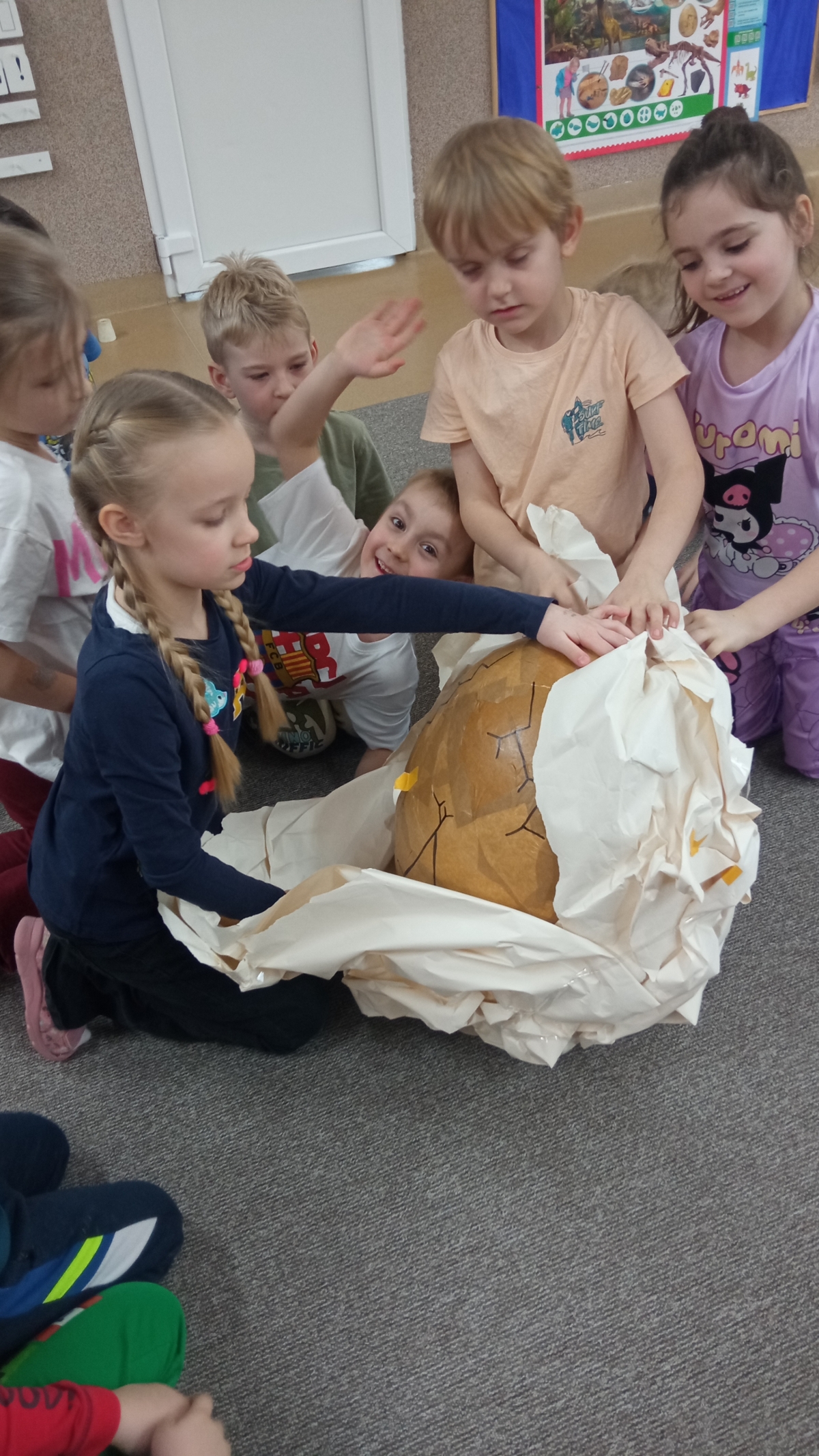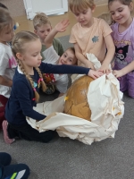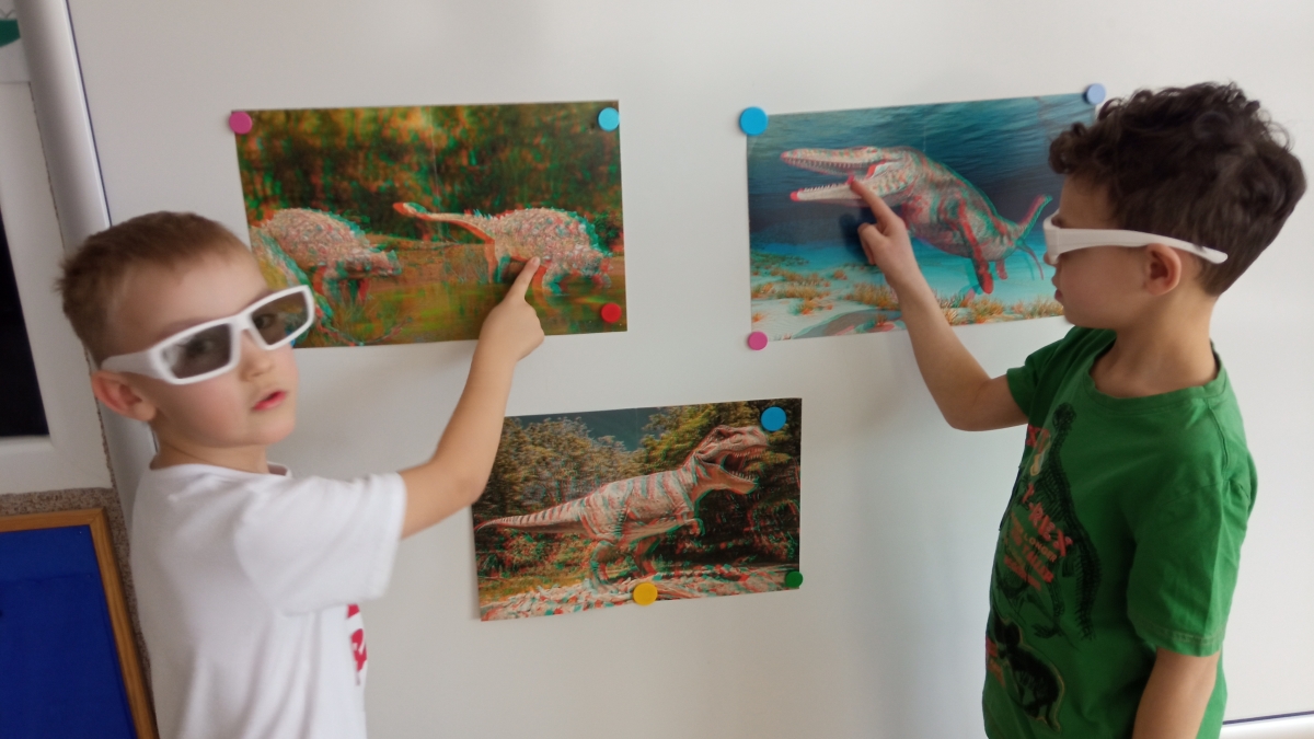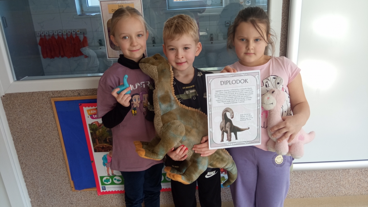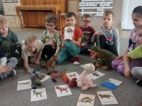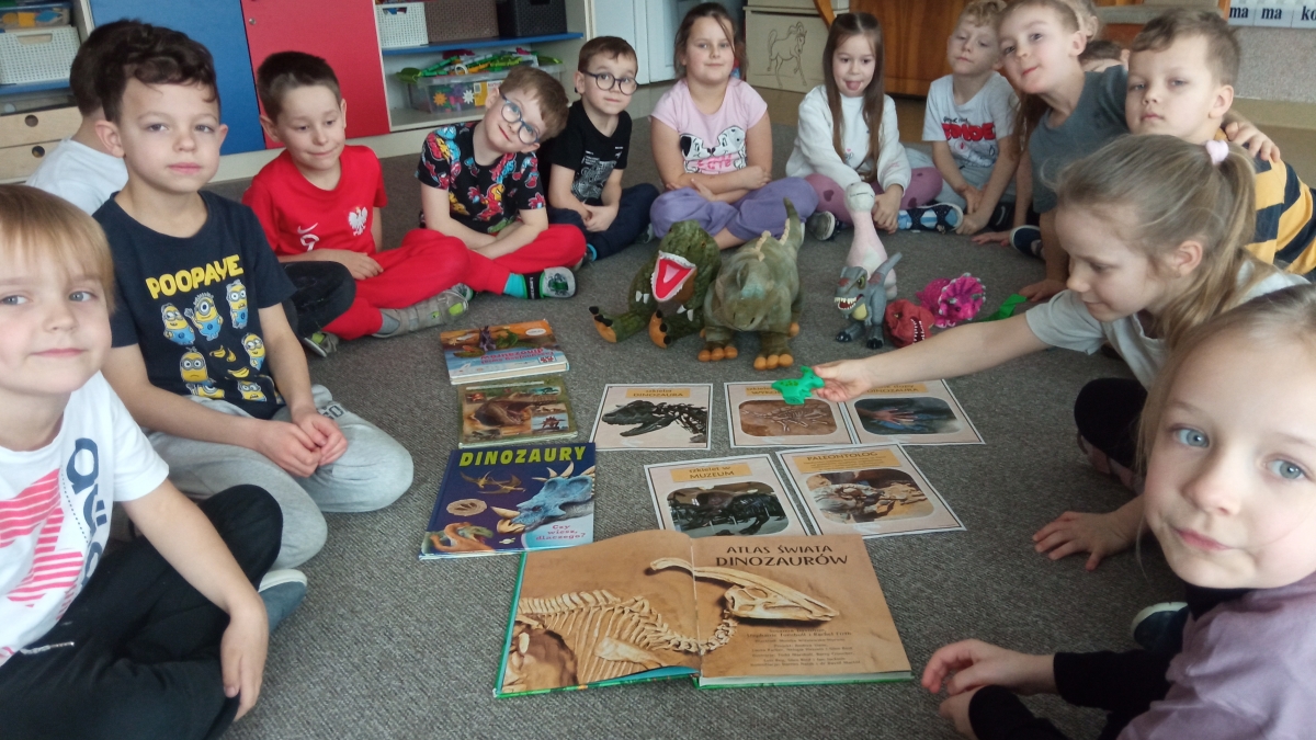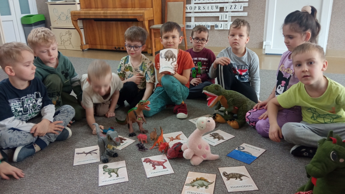 Dinozaury to stworzenia, które od dawna niezwykle fascynują szczególnie najmłodszych. Nie tylko zaskakują swoim wyglądem i wielkością, ale też kryją wiele tajemnic. Dlatego 26 lutego obchodziliśmy w przedszkolu Dzień Dinozaura. Z tej okazji zorganizowaliśmy zajęcia, które wprowadziły dzieci w prehistoryczny świat i przybliżyły im życie tych wyjątkowych gadów. Przedszkolaki dowiedziały się m.in. jak wyglądały, czym się żywiły oraz w jaki sposób prawdopodobnie wyginęły. Podczas zajęć dzieci chętnie porównywały wygląd dinozaurów, określały ich wielkość, segregowały je według określonej cechy. Nie zabrakło również ciekawych zabawach ruchowych oraz plastycznych związanych z tematyką zajęć. Jednak największe zainteresowanie wzbudziły zajęcia badawcze.