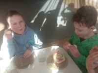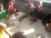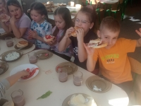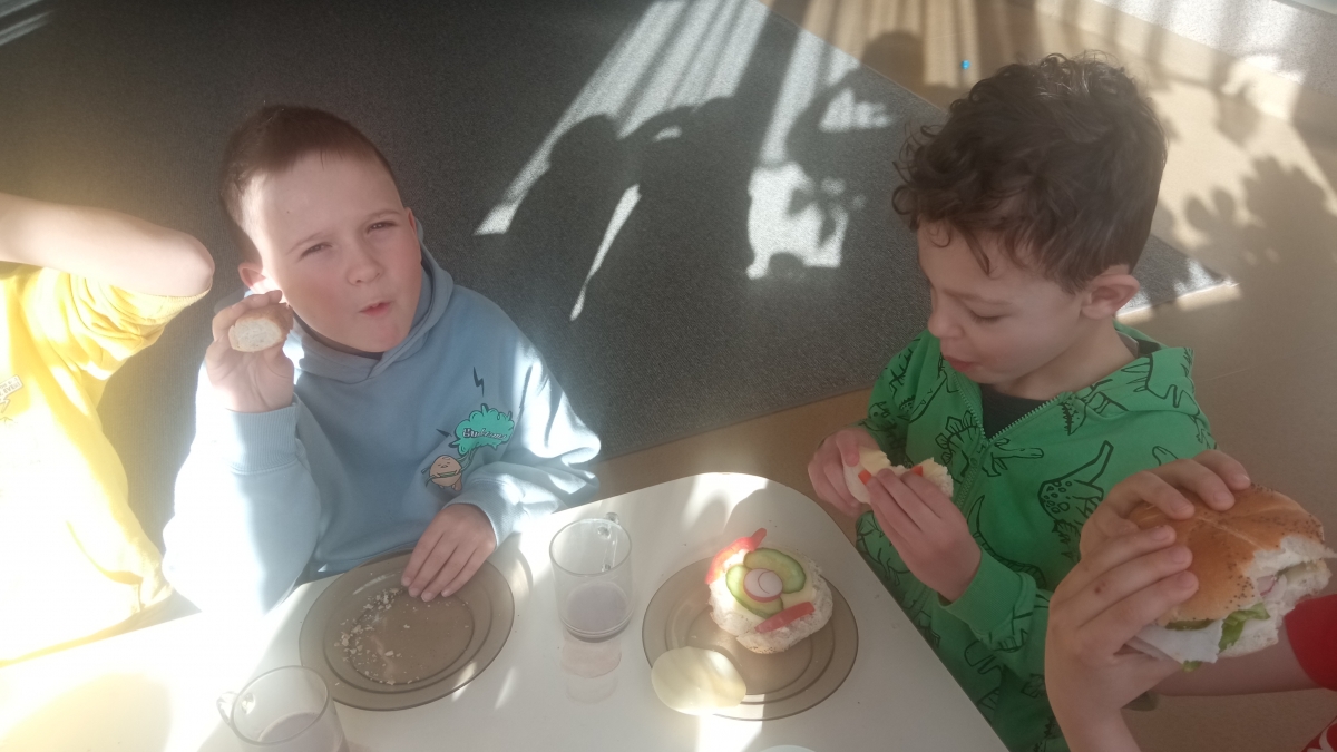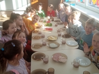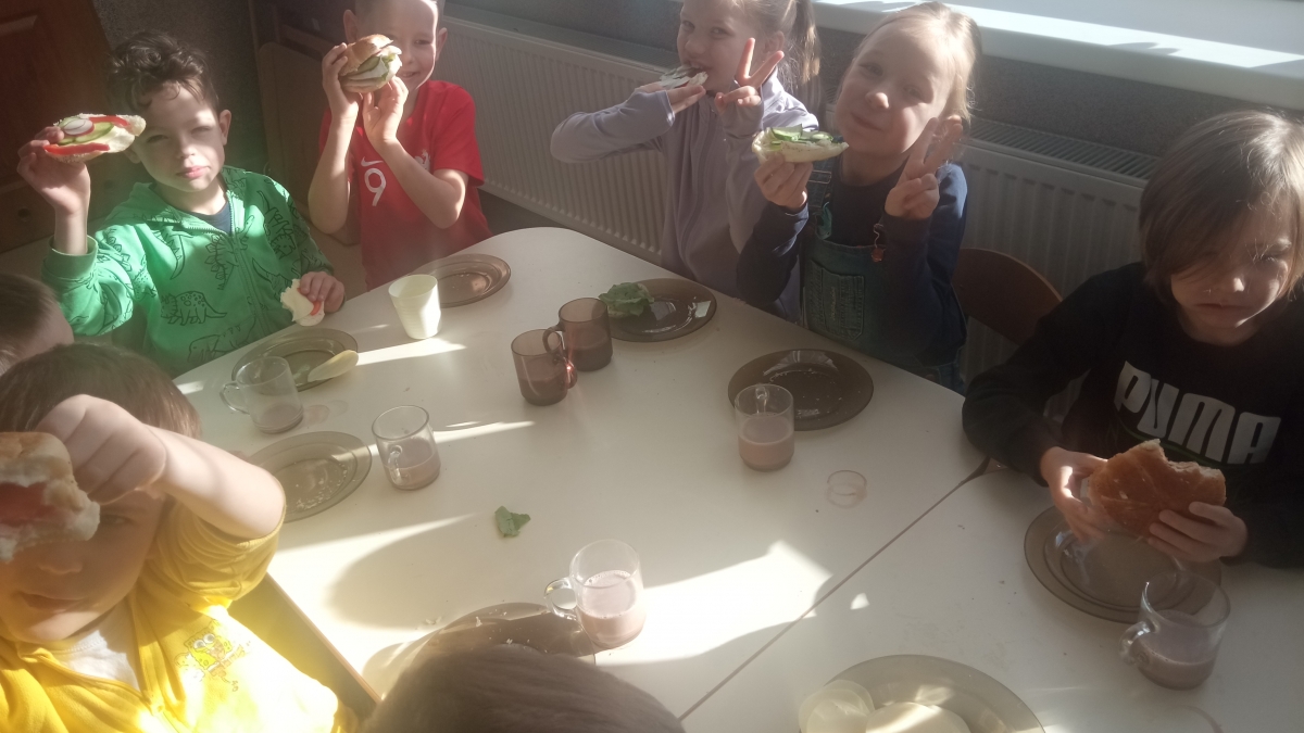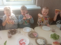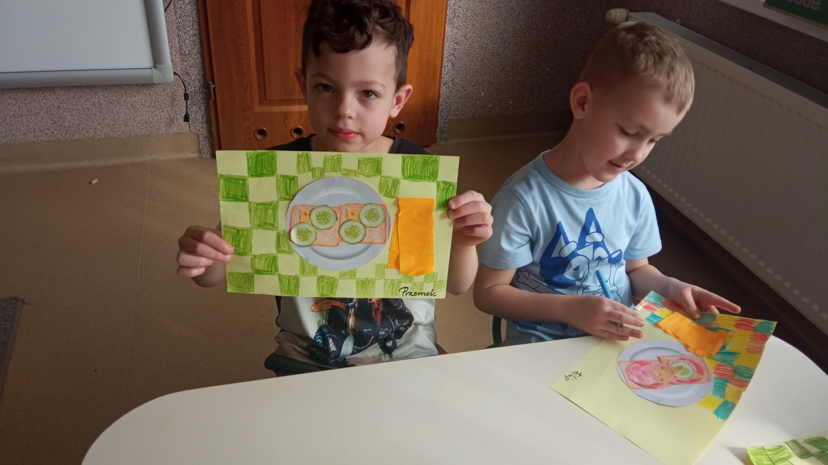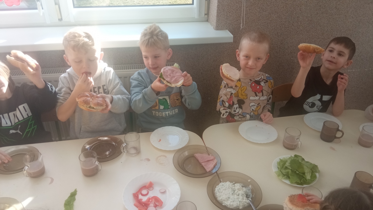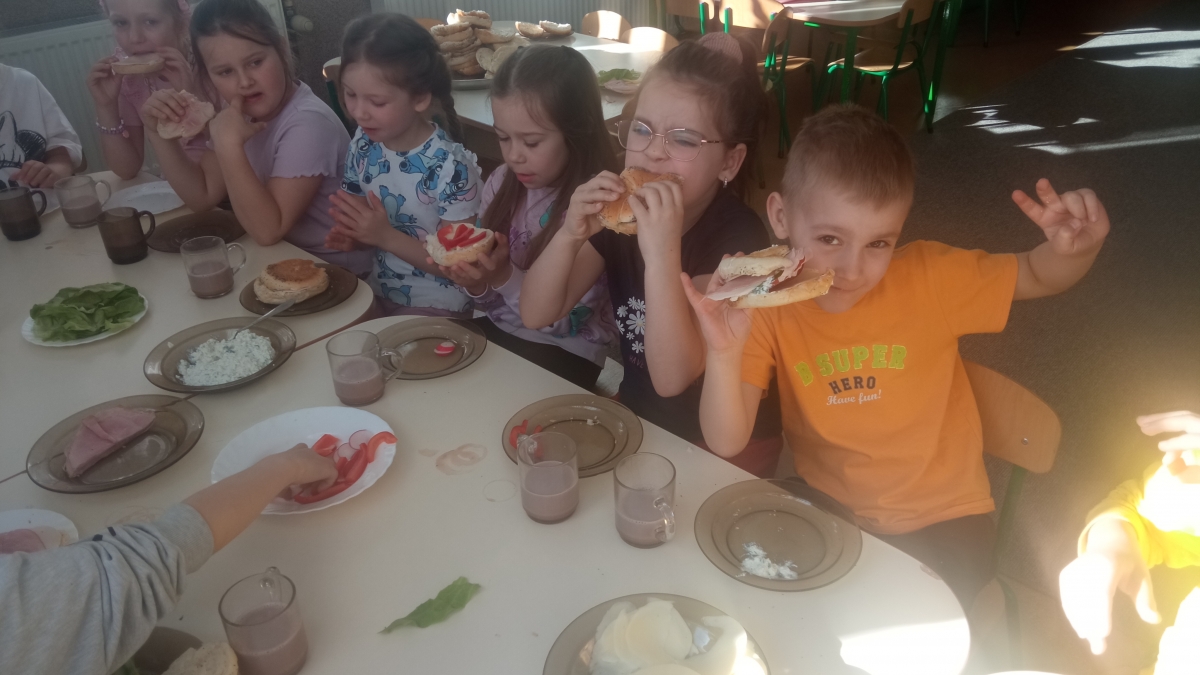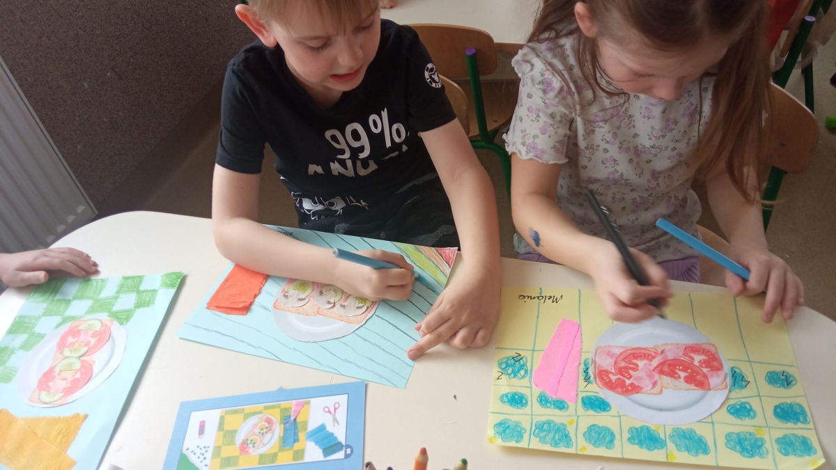 Tematyka w przedszkolu ,,Jem zdrowo’’ ma na celu kształtowanie prawidłowych nawyków żywieniowych poprzez zabawę i edukację. Dzieci uczą się o wartościach odżywczych warzyw i owoców, spożywają 4-5 regularnych posiłków dziennie oraz biorą udział w przygotowywaniu prostych, zdrowych potraw. Podczas zajęć kulinarnych Zuchy przygotowały zdrowe , witaminowe kanapki, a na zajęciach plastycznych stworzyły prace ,,Kolorowe kanapki.’’