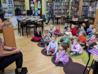 Maluchy zostały także poinformowane, że biblioteka bierze udział w programie „Mała książka, wielki człowiek”, w ramach którego przedszkolaki, którym rodzice założą karty czytelnicze mogą zbierać naklejki na specjalne karty. Po uzbieraniu dziesięciu naklejek otrzymuje się małą niespodziankę.
