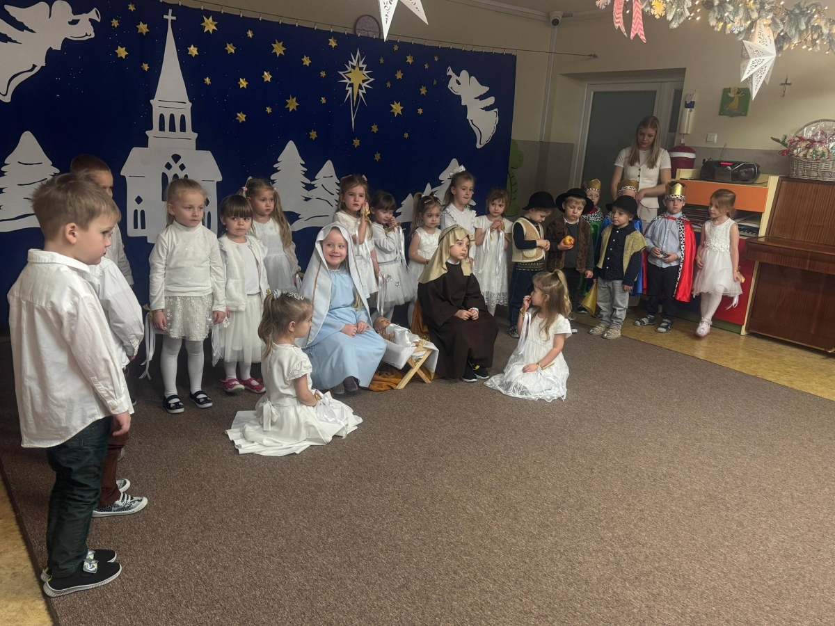 W dniu 12 grudnia czterolatki wzięły udział w zajęciach otwartych dla rodziców o tematyce świątecznej. Tego dnia u Średniaczków nastał cudowny dla wszystkich czas. Wspaniałym momentem było przedstawienie jasełkowe w ich wykonaniu oraz składanie świątecznych życzeń.