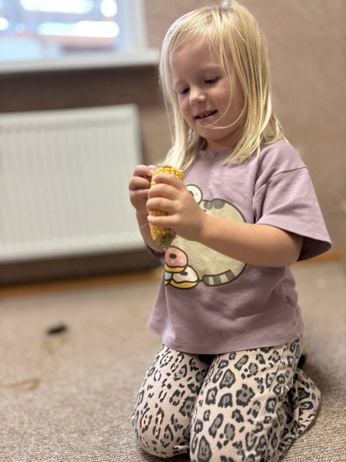 Starszaki radośnie powitały jesień! Dzieci poznawały dary jesieni, bawiły się kukurydzą i wykonały jesienną pracę plastyczną z jej wykorzystaniem. Dużo radości sprawiła także ścieżka sensoryczna, dzięki której mogliśmy poczuć jesień wszystkimi zmysłami. To był dzień pełen kolorów i wrażeń!