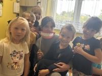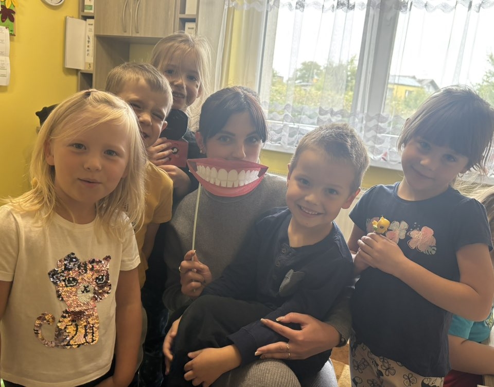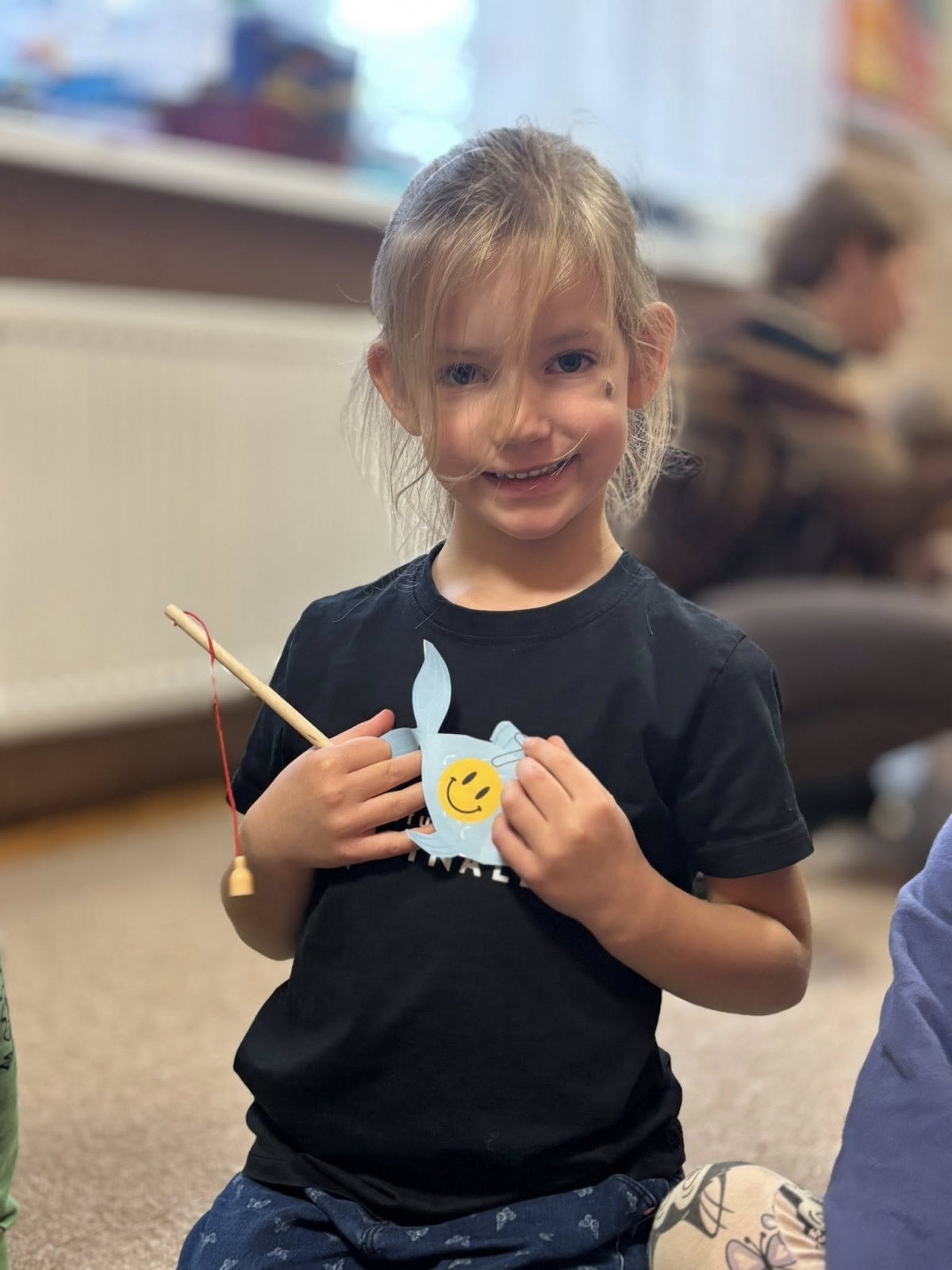 Z okazji Dnia Uśmiechu Starszaki zadbały o dobry humor wszystkich dookoła! Dzieci prowadziły wywiady, pytając: „Co sprawiło dzisiaj Pani szczęście?” – sprawiając tym wiele radości. Było też dużo śmiechu przy smakowaniu cytryny, a podczas zabawy w łowienie uśmiechniętych rybek z cyframi przedszkolaki ćwiczyły spostrzegawczość i liczenie. To był dzień pełen radości i pozytywnej energii!