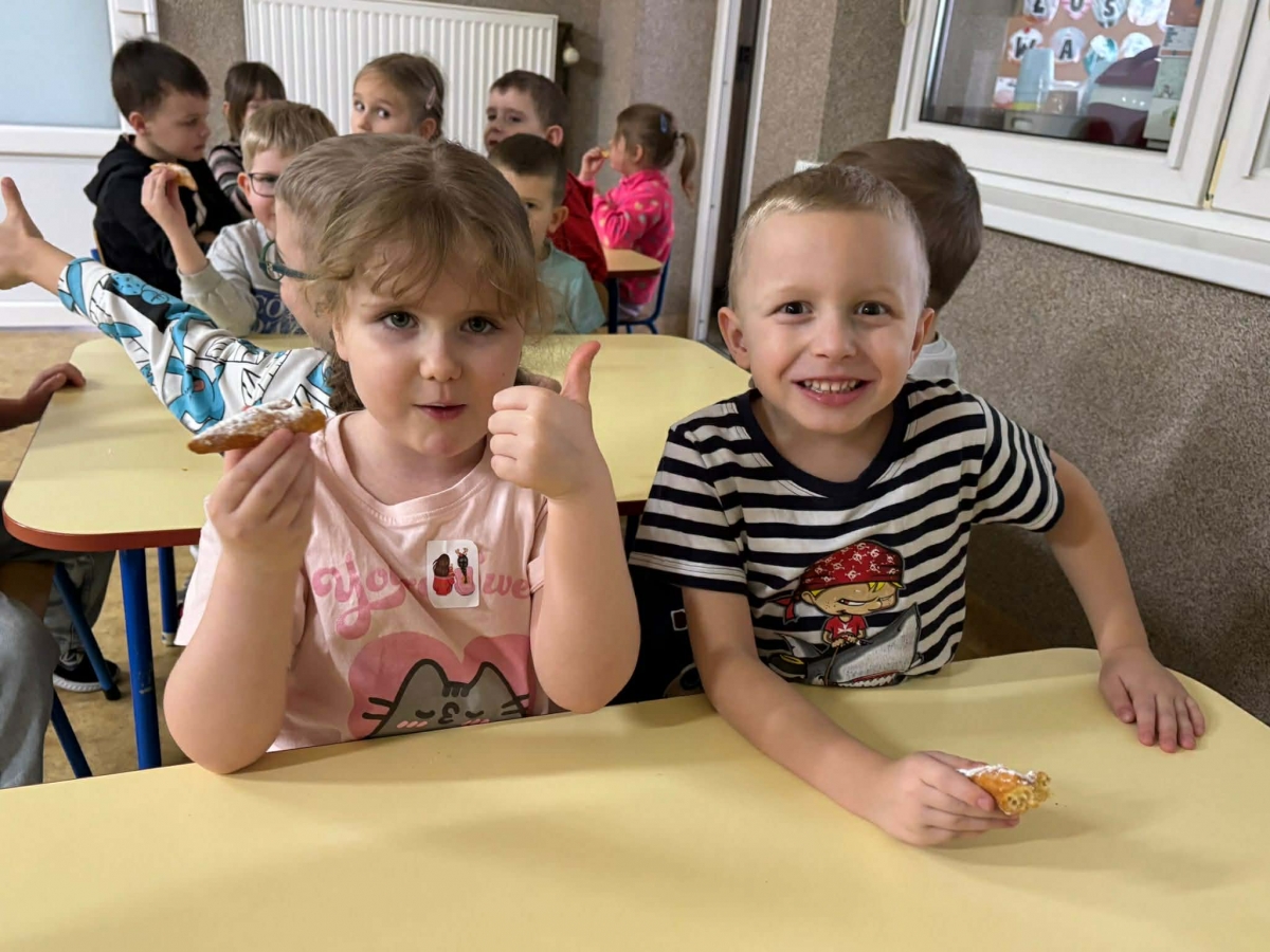 Dzieci uczestniczyły w zabawach stolikowych „kodowanie pączków”, rozwijając logiczne myślenie i spostrzegawczość. Nie zabrakło także słodkiej degustacji – przedszkolaki ze smakiem zajadały chruściki. Wspólnie tańczyły do wesołych, pączkowych piosenek.