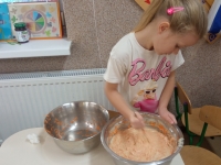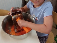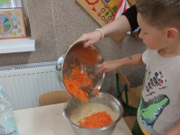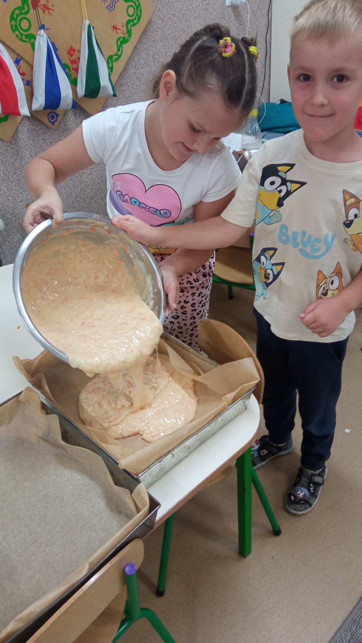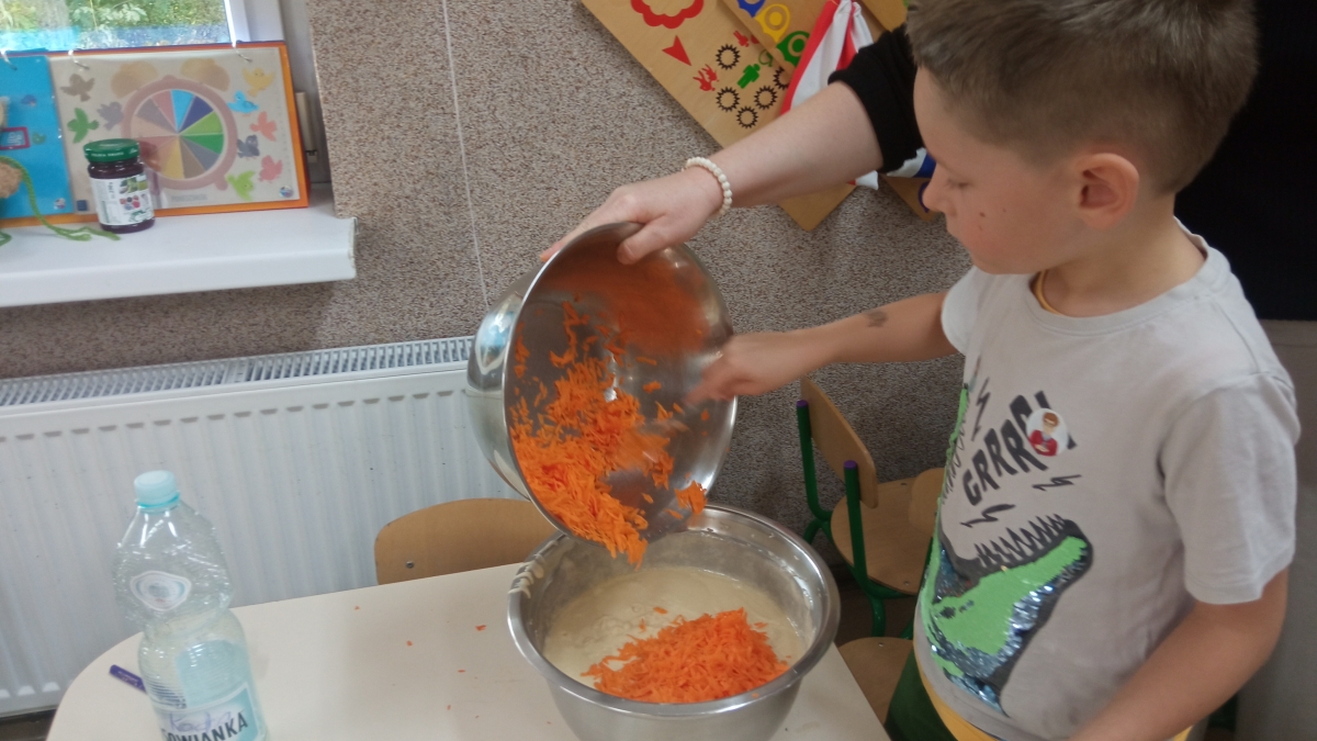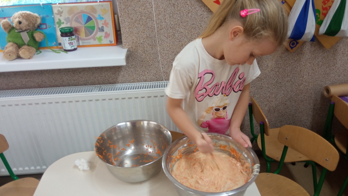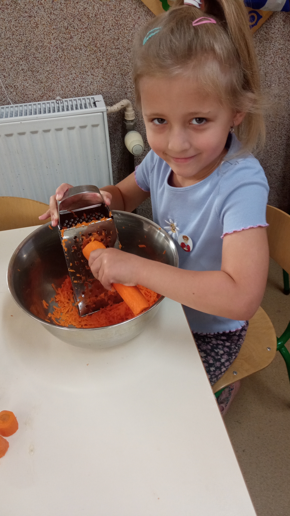 W ramach tygodniowej tematyki „Zdrowie na talerzu” w naszej grupie odbyły się zajęcia kulinarne. Dzieci dowiedziały się, jak ważne są witaminy dla zdrowia oraz dlaczego warto je jeść. Przedszkolaki umyły i potarły marchewkę, z której upiekły pyszne ciasto marchewkowe. Każdego dnia w naszym przedszkolu dzieci otrzymują zestaw witamin w postaci warzyw i owoców. Warzywa królowały na wszystkich zajęciach w minionym tygodniu.To była nie tylko nauka poprzez świetną zabawę ale i doskonała okazja, aby zrozumieć, jak istotne jest zdrowe odżywianie.