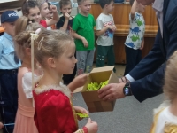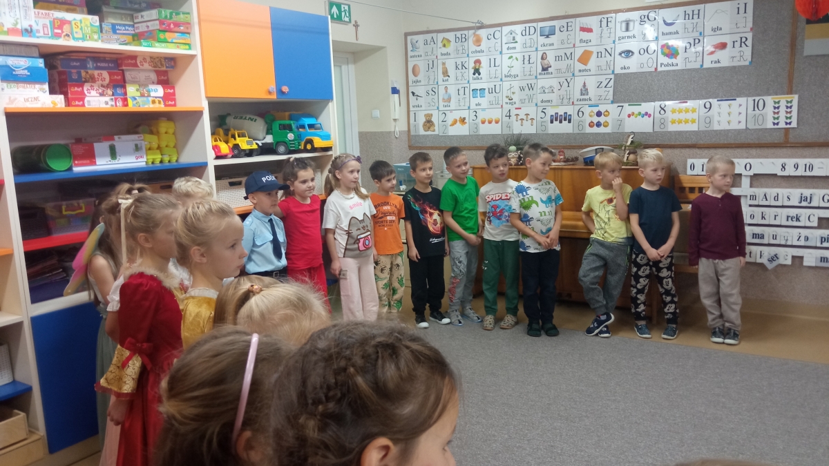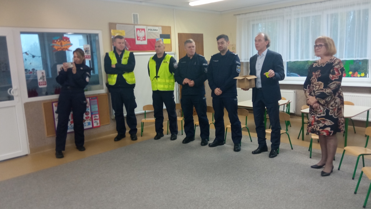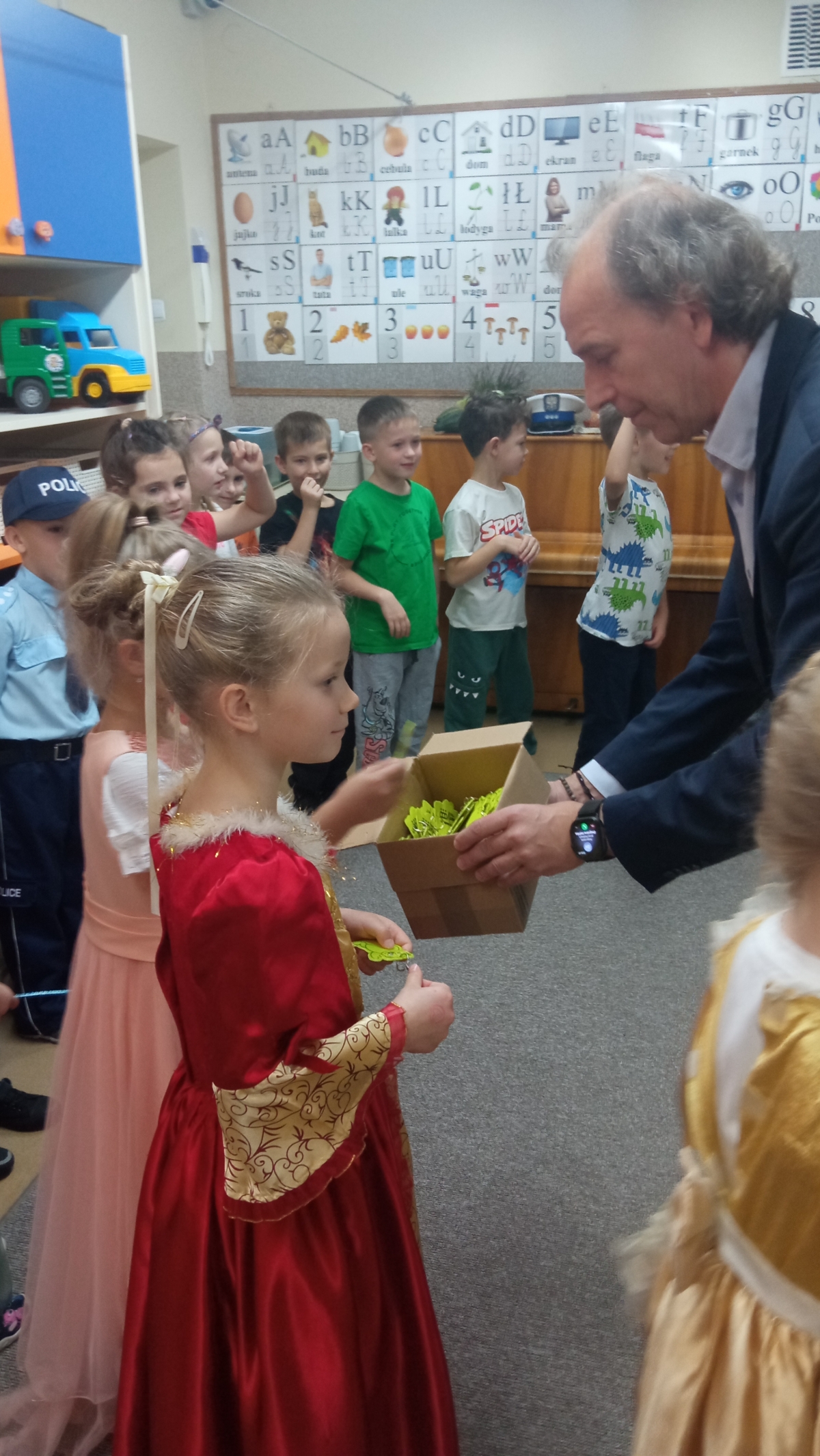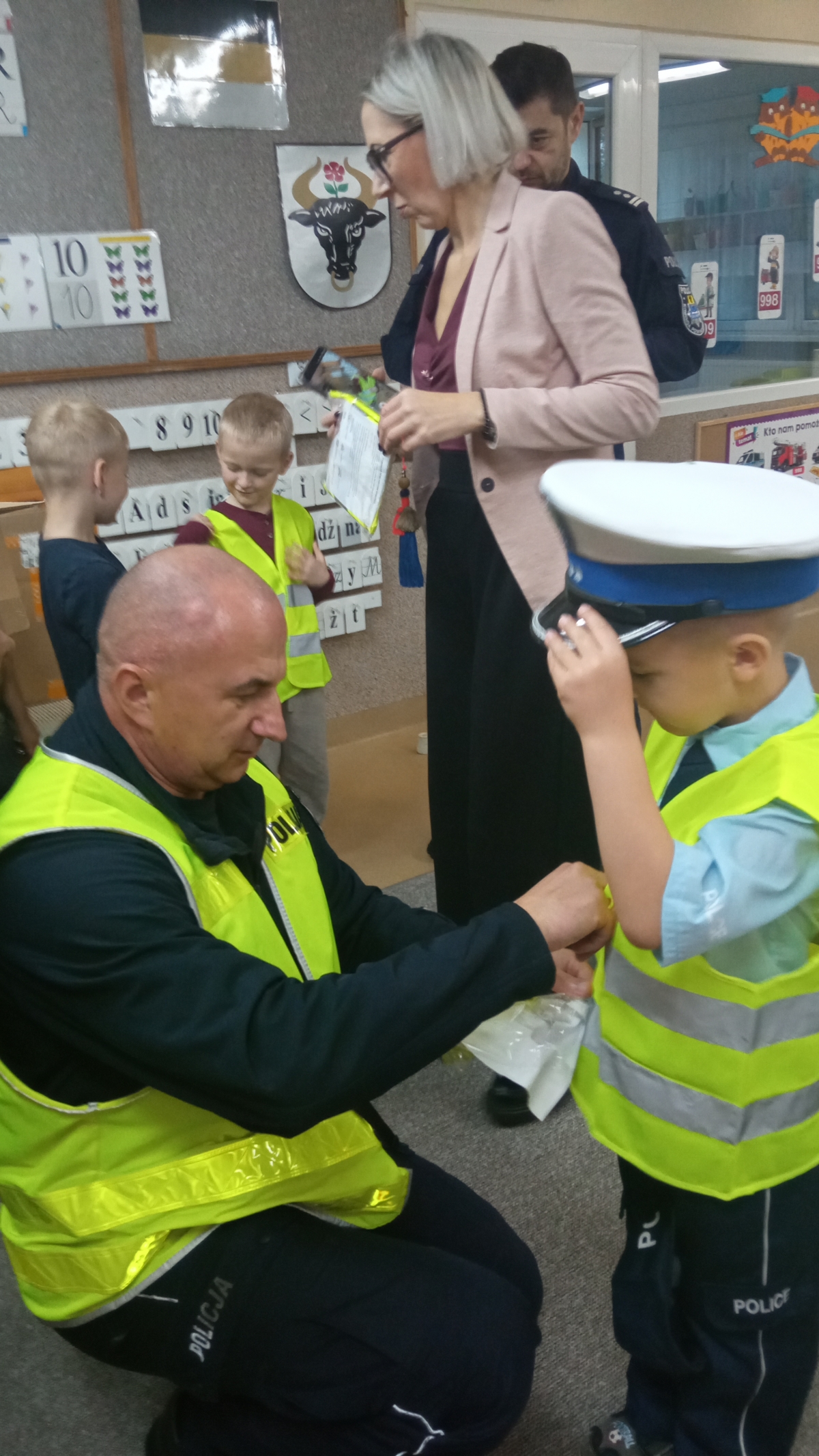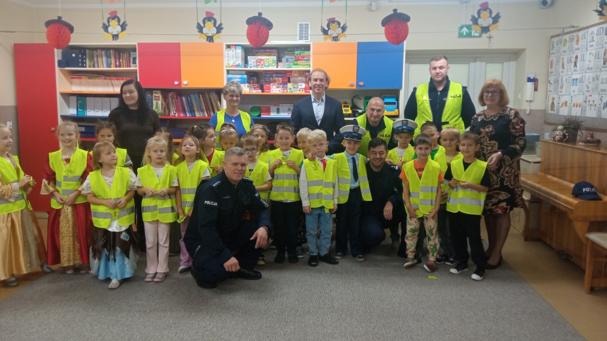 W naszym przedszkolu dużo uwagi poświęcamy edukacji najmłodszych w zakresie bezpieczeństwa . Dnia 24 października odbyło się niezwykłe spotkanie z udziałem lokalnych władz i służb mundurowych. Wydarzenie zgromadziło Starostę Chojnickiego Marka Szczepańskiego oraz młodszego inspektora Sebastiana Pastuchę z Komendy Powiatowej Policji w Chojnicach, którzy wraz z funkcjonariuszami przygotowali dla dzieci wyjątkową niespodziankę. Przedszkolaki przywitały gości przedstawieniem inspirowanym bajką o Kopciuszku, które zawierało ważne wskazówki dotyczące bezpieczeństwa. Podczas wizyty dzieci zostały obdarowane odblaskami i kamizelkami odblaskowymi. Funkcjonariusze policji przypomnieli przedszkolakom o podstawowych zasadach poruszania się po drogach. Te edukacyjne zajęcia były okazją do połączenia nauki z zabawą.