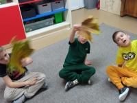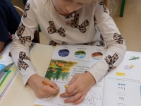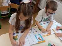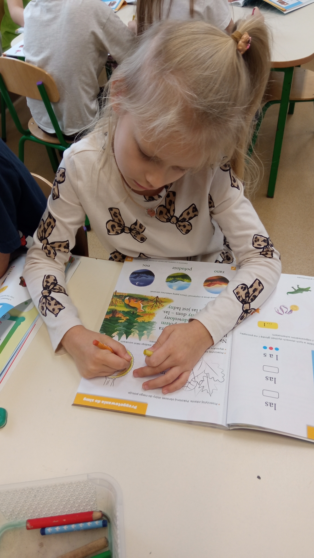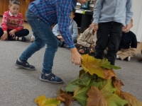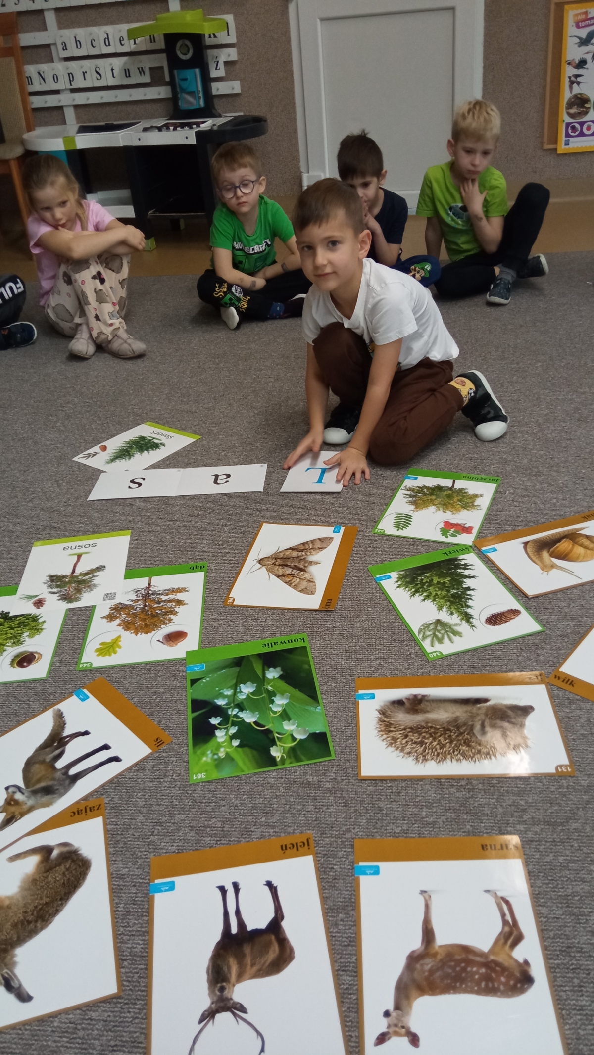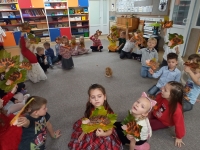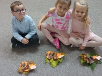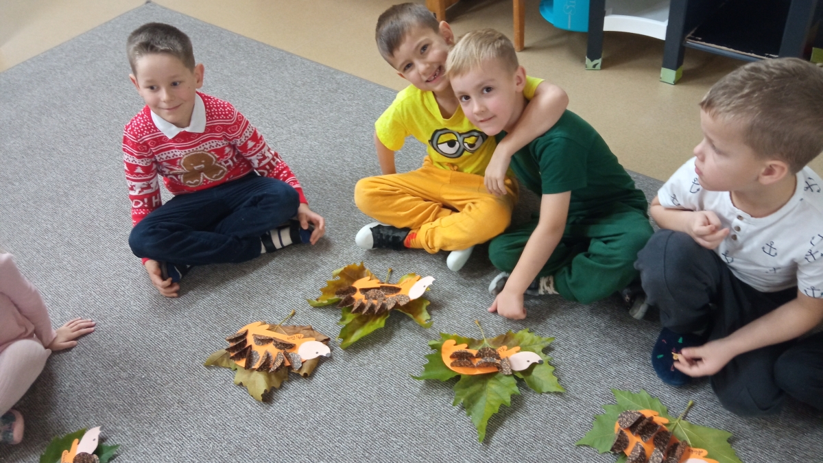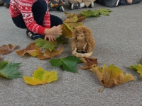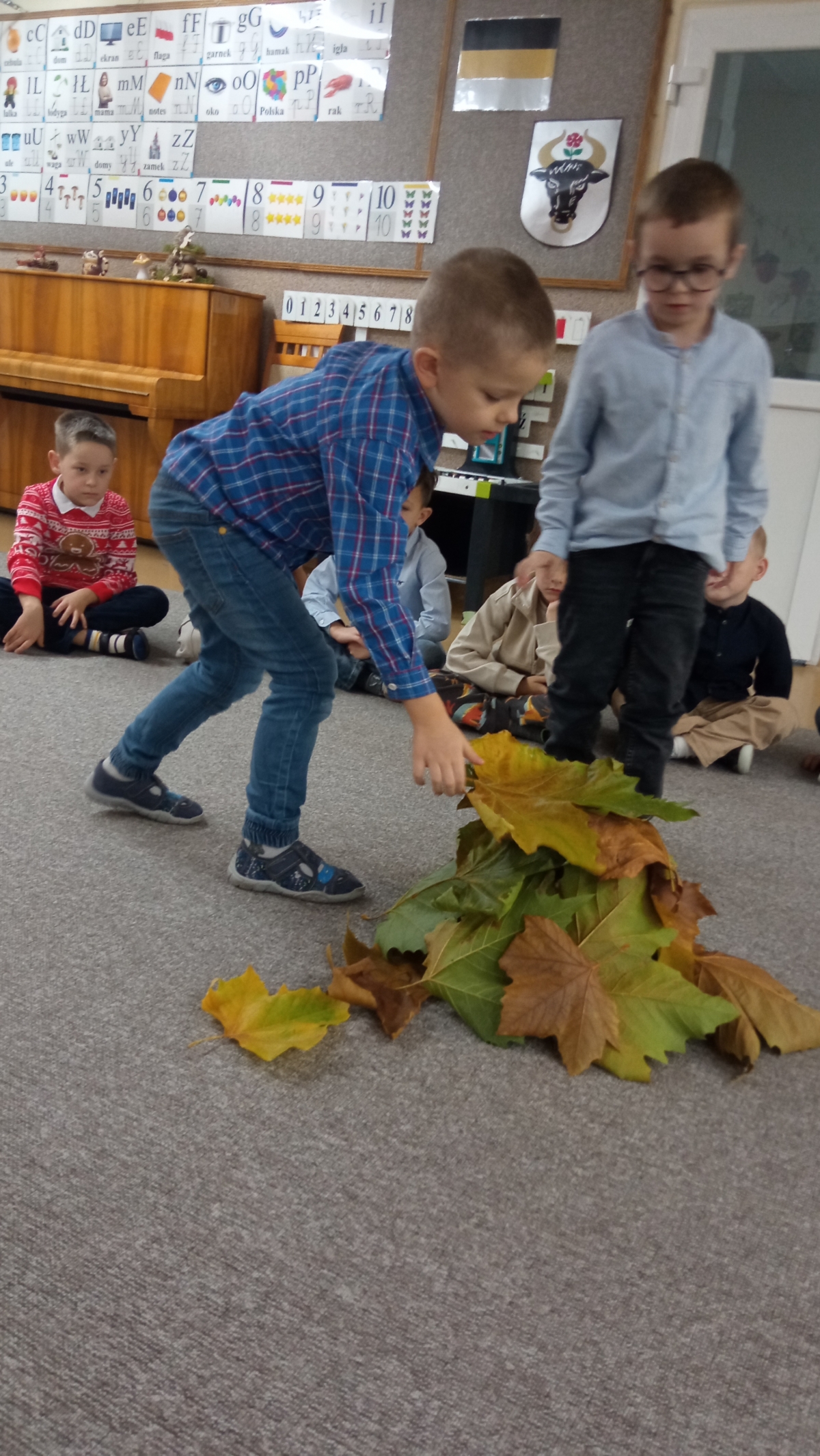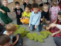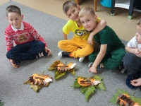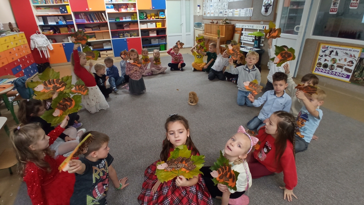 Podczas zajęć, dzieci dowiedziały się jak zwierzęta przygotowują się do zbliżającej zimy. Poznały różne sposoby radzenia sobie ptaków i ssaków np. które z nich: zasypiają na zimę, gromadzą zapasy, odlatują do ciepłych krajów, pozostają na zimę w Polsce. Na podstawie wiersza ,,Odpoczynek zimowy’’ oraz opowiadania i ilustracji Zuchy poznały środowisko jakim jest ,,Mieszkanie zwierząt-Las''. Uczyły się pisanych liter ,,l’’ i ,,L’’. Stworzyły także ciekawe prace plastyczno- techniczne z wykorzystaniem barwnych, jesiennych liści ,,Jeżyk’’. Były to inspirujące zajęcia, podczas których cała grupa była bardzo zaciekawiona i zaangażowana.