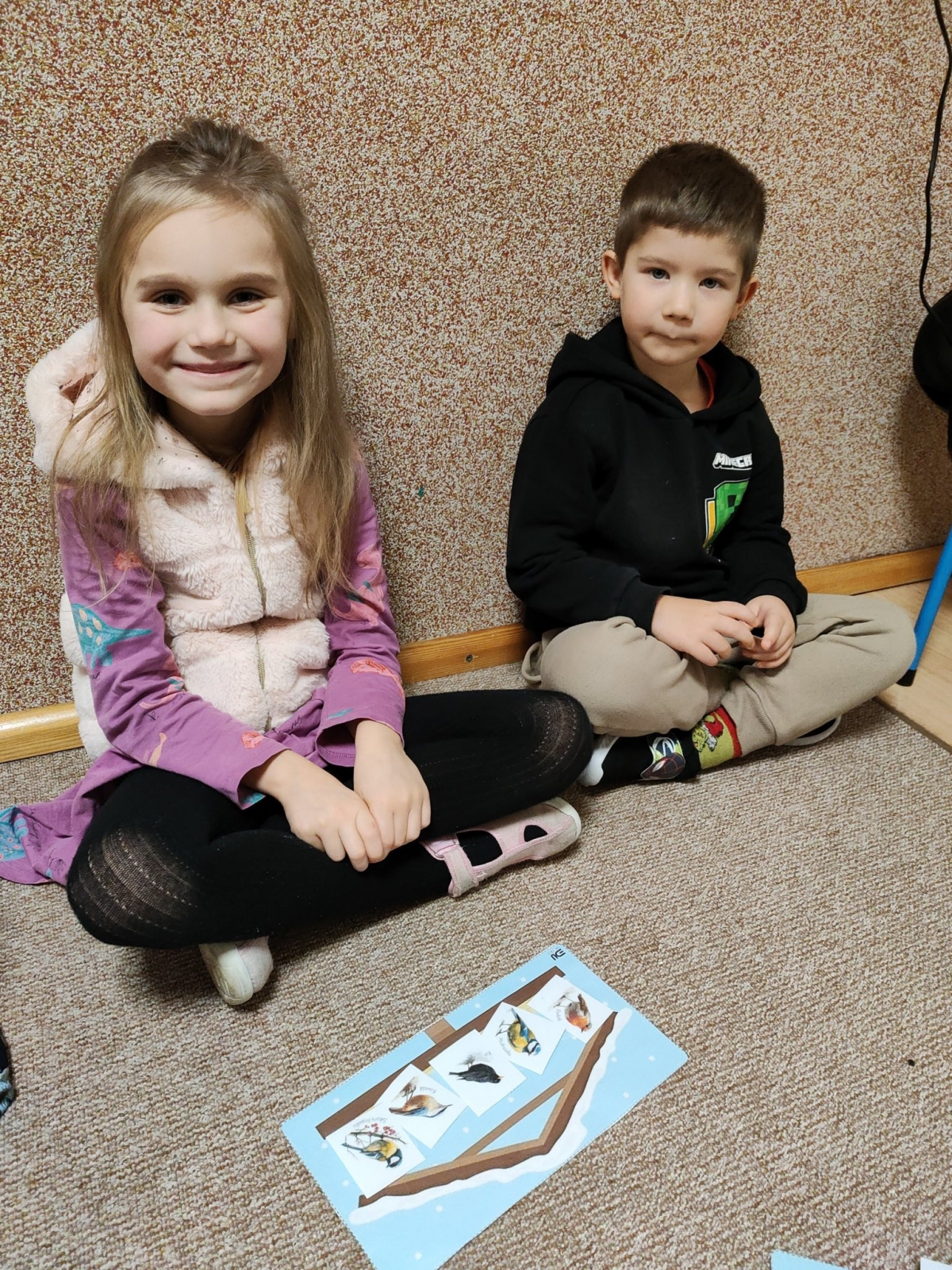 Starszaki poznawały dziś temat „Zwierzęta zimą”. Dowiedziały się, które zwierzęta zapadają w sen zimowy, a które pozostają aktywne, oraz gdzie znajdują swoje zimowe schronienia. Dzieci układały w karmniku zimujące w Polsce ptaki według kodu, a na koniec wykonały pracę plastyczną przedstawiającą niedźwiedzia śpiącego w gawrze.