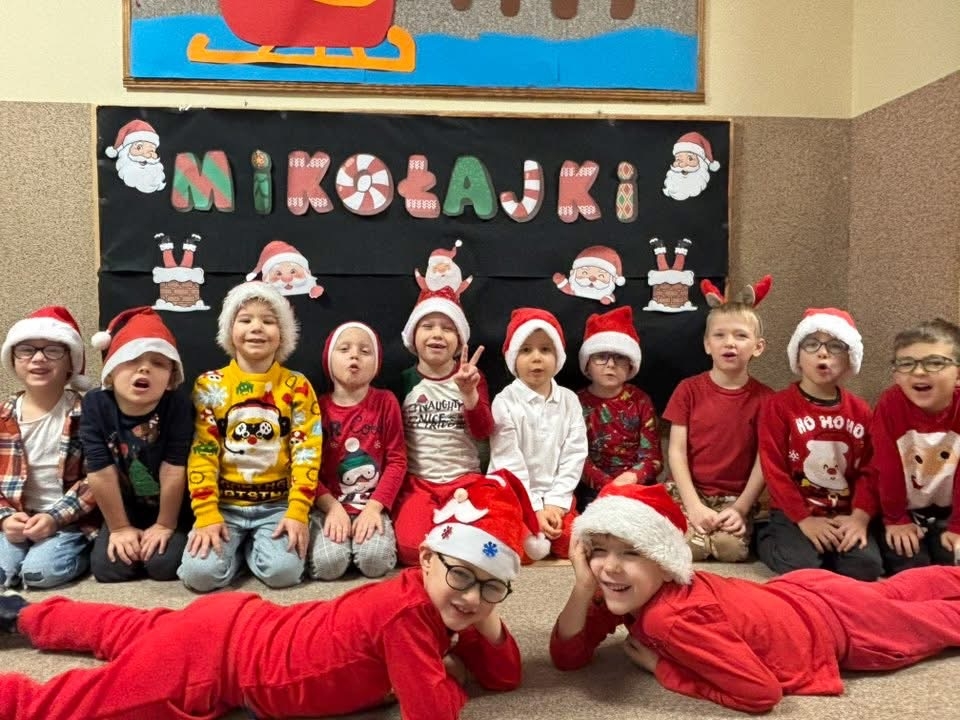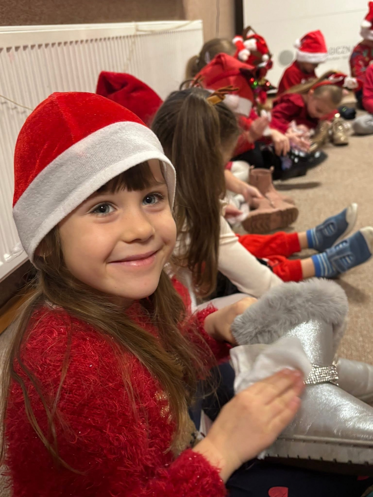 Starszaki z radością przygotowywały się na wizytę Mikołaja, czyszcząc swoje buty i wychodząc na dwór, by go przywitać. Po powrocie do sali czekała na dzieci miła niespodzianka – prezenty od Świętego Mikołaja, które sprawiły wszystkim wiele radości. 🎅🎁