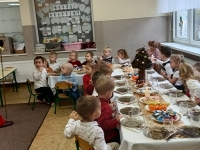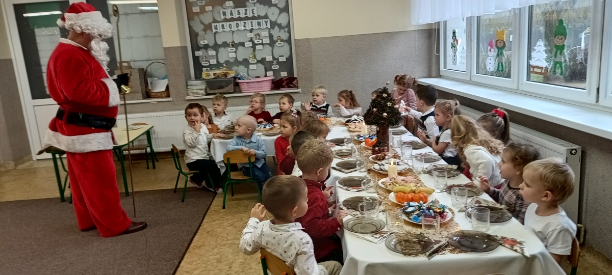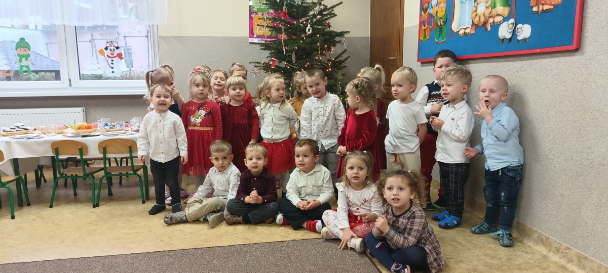 Dziś w naszym przedszkolu panowała wyjątkowo świąteczna atmosfera. Dzieci z grupy Maluszki oglądały jasełka w wykonaniu najstarszej grupy, nagradzając występ gromkimi brawami. Następnie wszyscy dzielili się opłatkiem i składali sobie serdeczne życzenia. Wspólnie śpiewaliśmy kolędy, ciesząc się nadchodzącymi świętami. Wielką radość sprawiło dzieciom spotkanie z Gwiazdorem, który obdarował każdego prezentem. To był pełen uśmiechów, ciepła i radosnych przeżyć dzień.