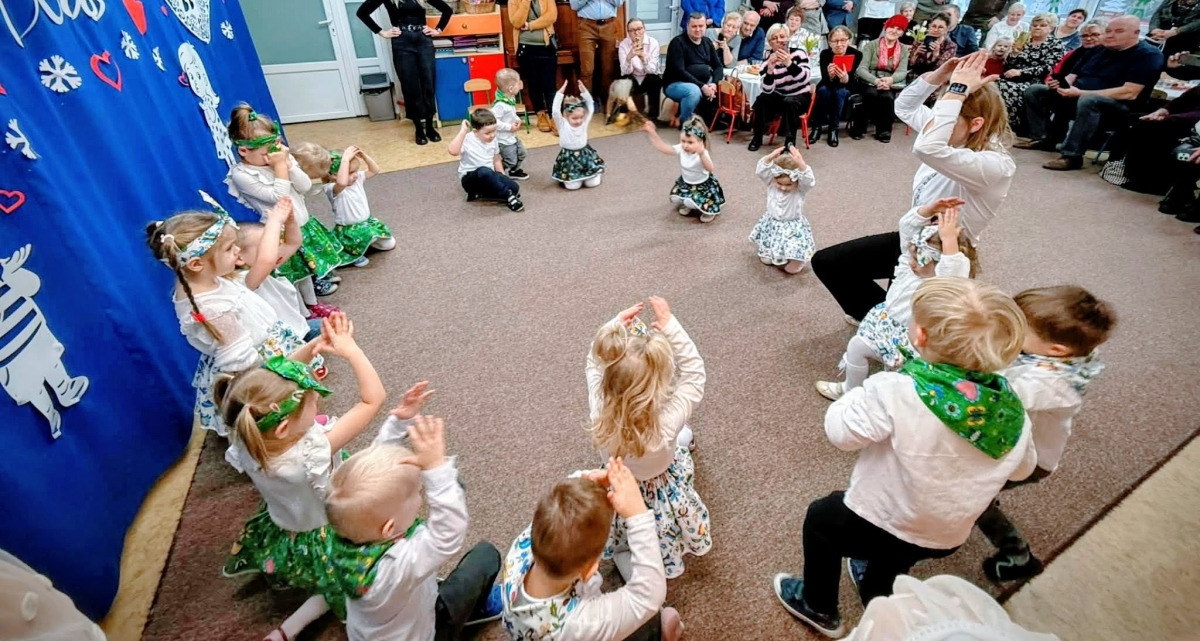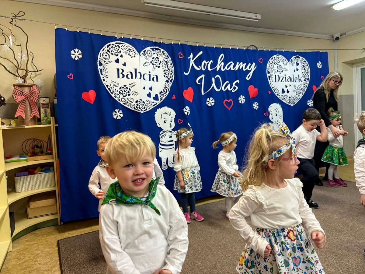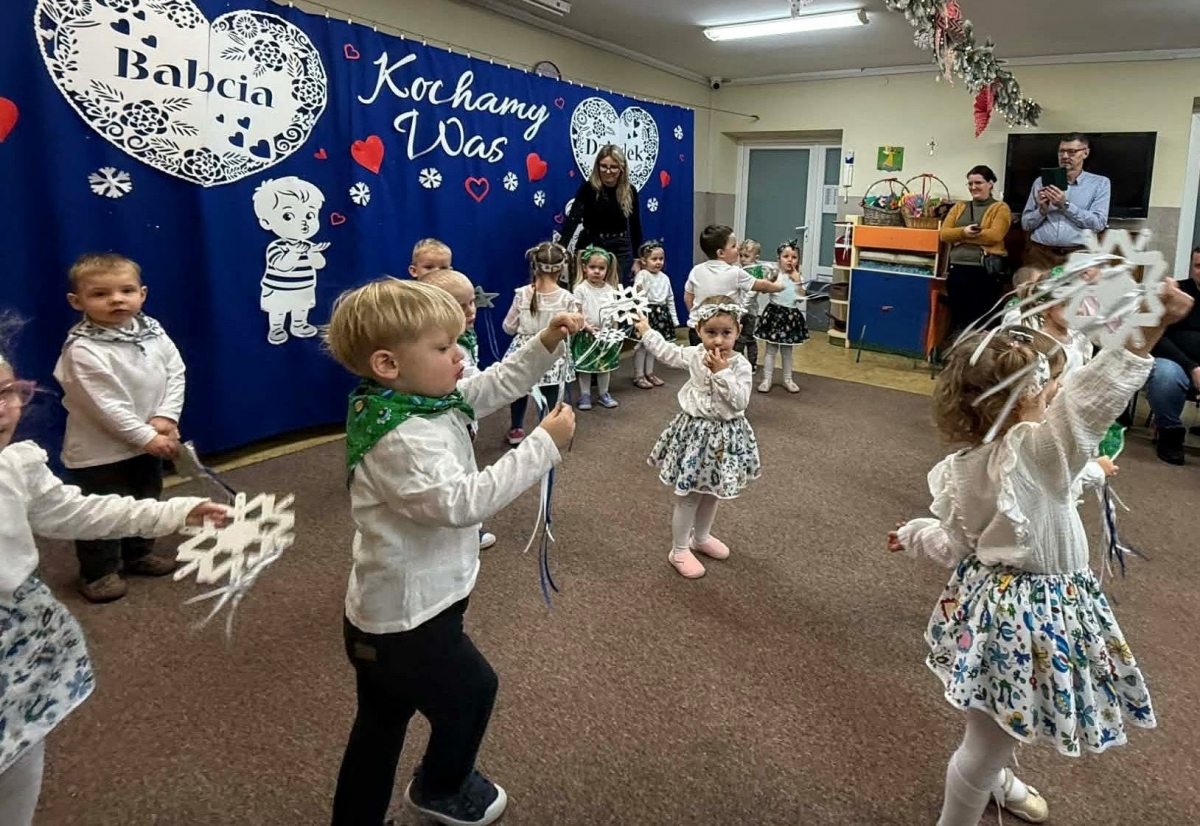 Uroczystość z okazji Dnia Babci i Dziadka w naszym przedszkolu była pełna radości, wzruszeń i serdecznej atmosfery. Maluszki z wielkim zaangażowaniem zaprezentowały przygotowany program artystyczny – były wierszyki, piosenki oraz tańce, które wywołały uśmiech i dumę na twarzach zaproszonych gości.