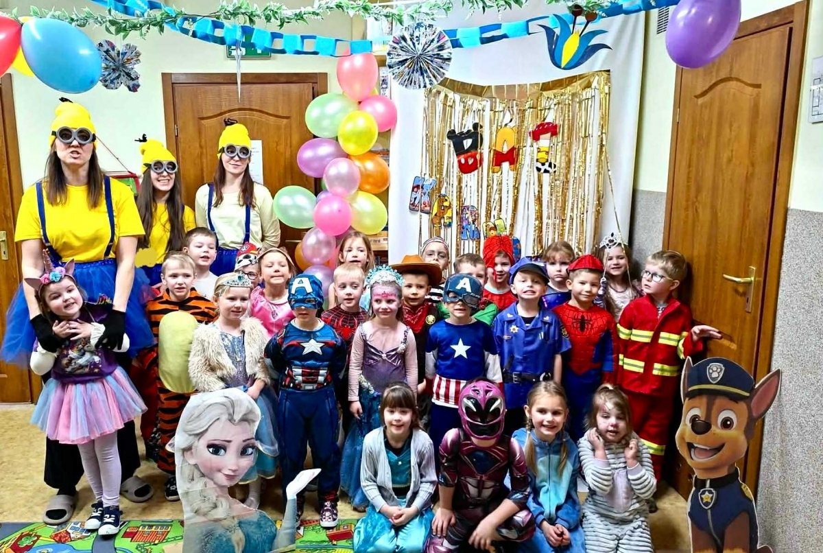 Bal karnawałowy był pełen radości i kolorów. Dzieci z grupy Starszaków z wielkim entuzjazmem brały udział w zabawach integracyjnych, które sprzyjały wspólnej zabawie i budowaniu przyjaznej atmosfery. Nie zabrakło tańców z balonami, które dostarczyły wszystkim mnóstwo śmiechu i pozytywnej energii.