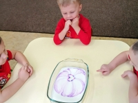Nie zabrakło kreatywnych aktywności – dzieci wykonywały eksperymenty z sercami oraz z dumą ozdabiały swoje rączki walentynkowymi tatuażami. Dużo emocji wzbudziła także poczta walentynkowa – przedszkolaki wręczały sobie miłe kartki i życzenia.