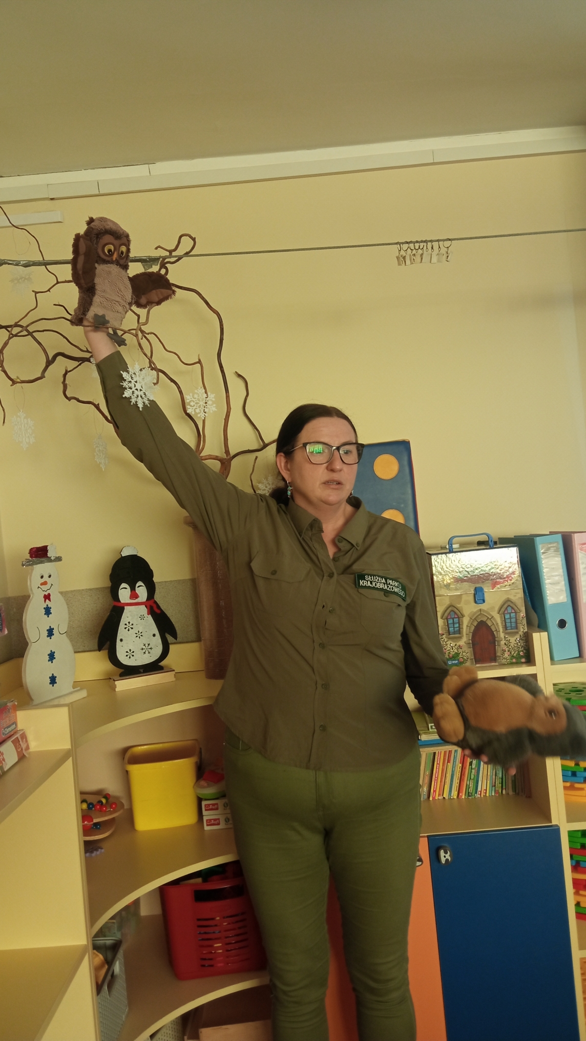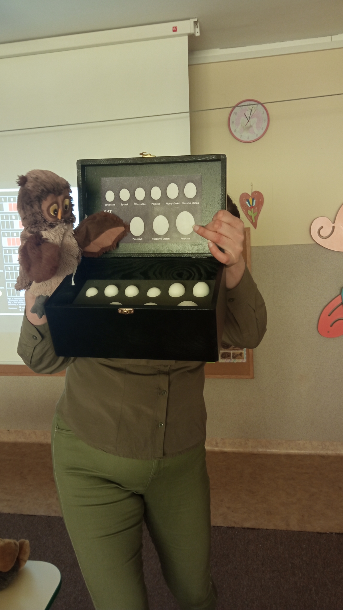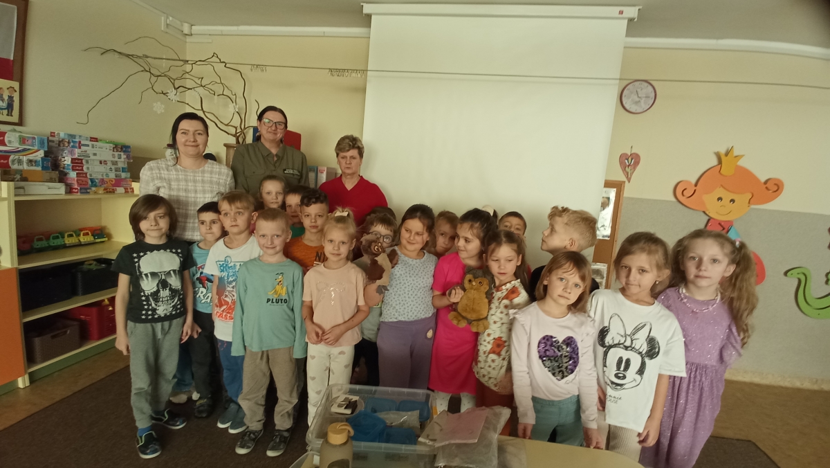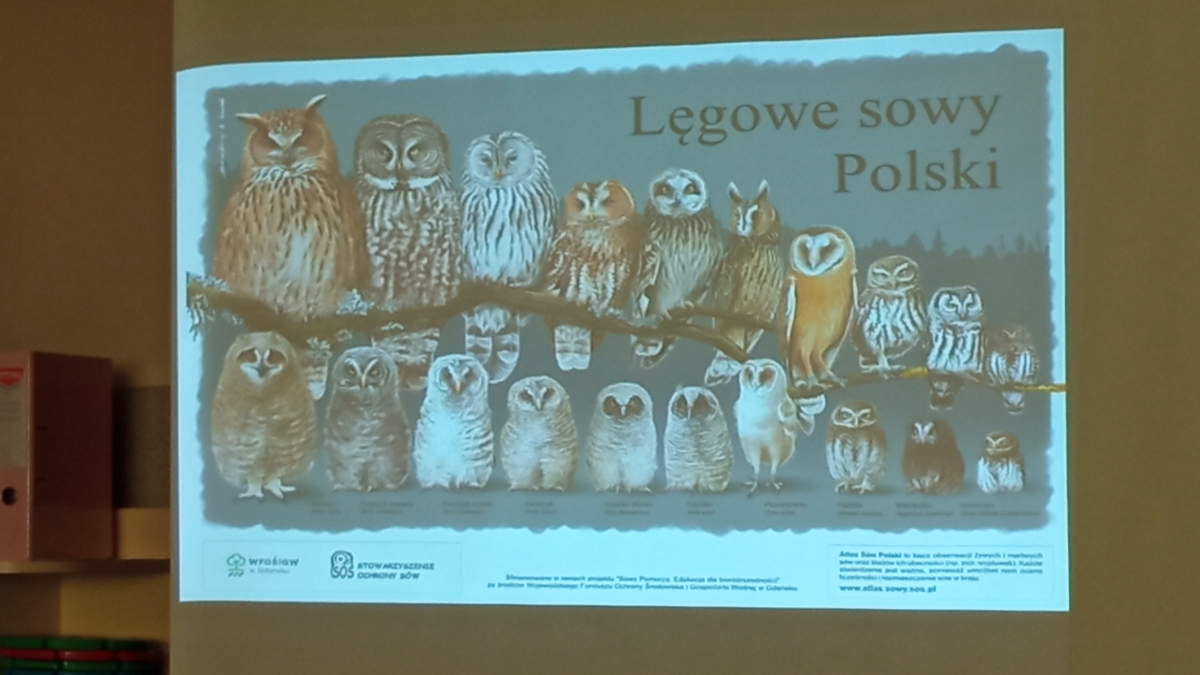,,Sowy bez tajemnic’’- pod takim tytułem odbyły się zajęcia edukacyjno- przyrodnicze, zaprezentowane przez panią Grażynę Jaszewską . Dzięki ogromnemu zaangażowaniu i pasji pani Grażyny- przedstawicielki Zaborskiego Parku Krajobrazowego dzieci poznały unikalny świat ptaków-sów.