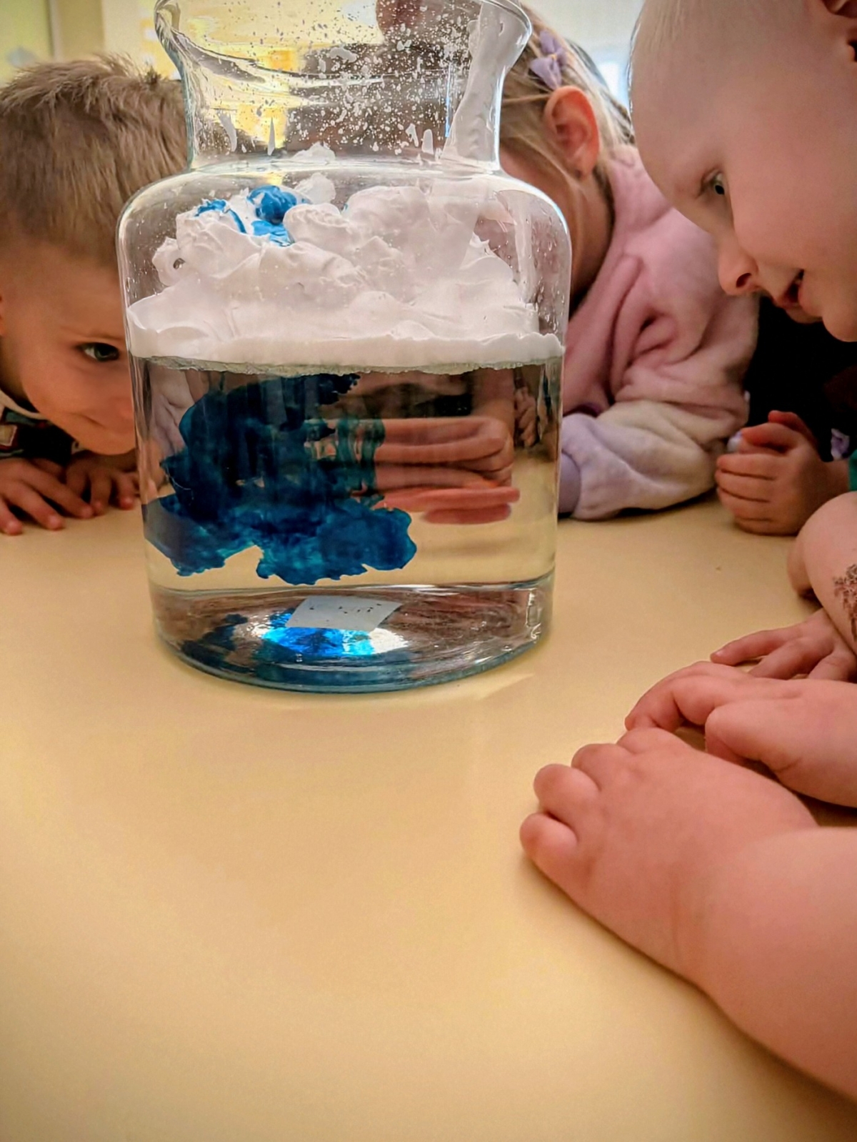 Dużym zainteresowaniem cieszył się także eksperyment „Deszczowa chmura w słoiku”, dzięki któremu dzieci mogły zaobserwować, jak powstaje deszcz.