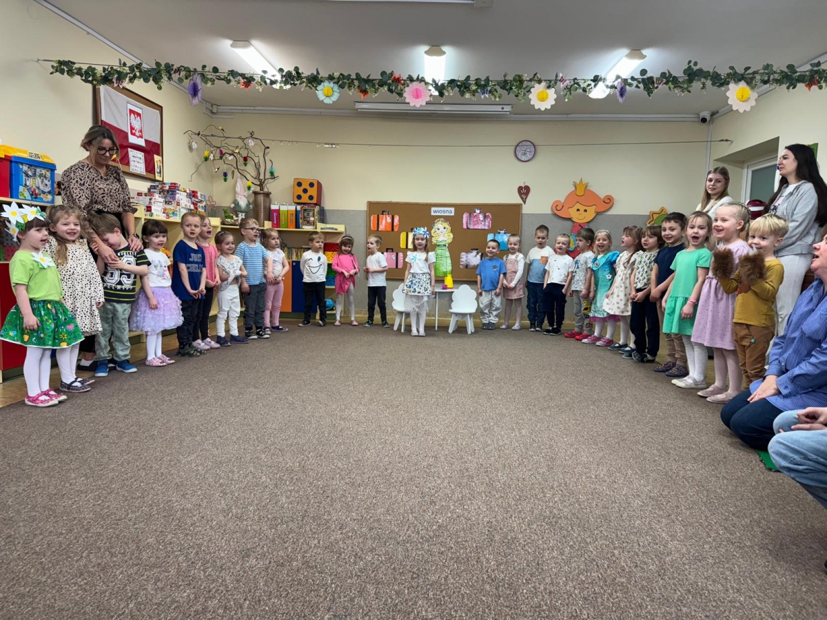 Ostatnie wiosenne zajęcia otwarte u średniaczków to była świetna okazja do integracji rodziców z dziećmi poprzez kreatywne zabawy plastyczne i ruchowe. Zajęcia miały na celu przywitanie nowej pory roku oraz rozwijanie zainteresowań matematycznych dzieci.