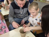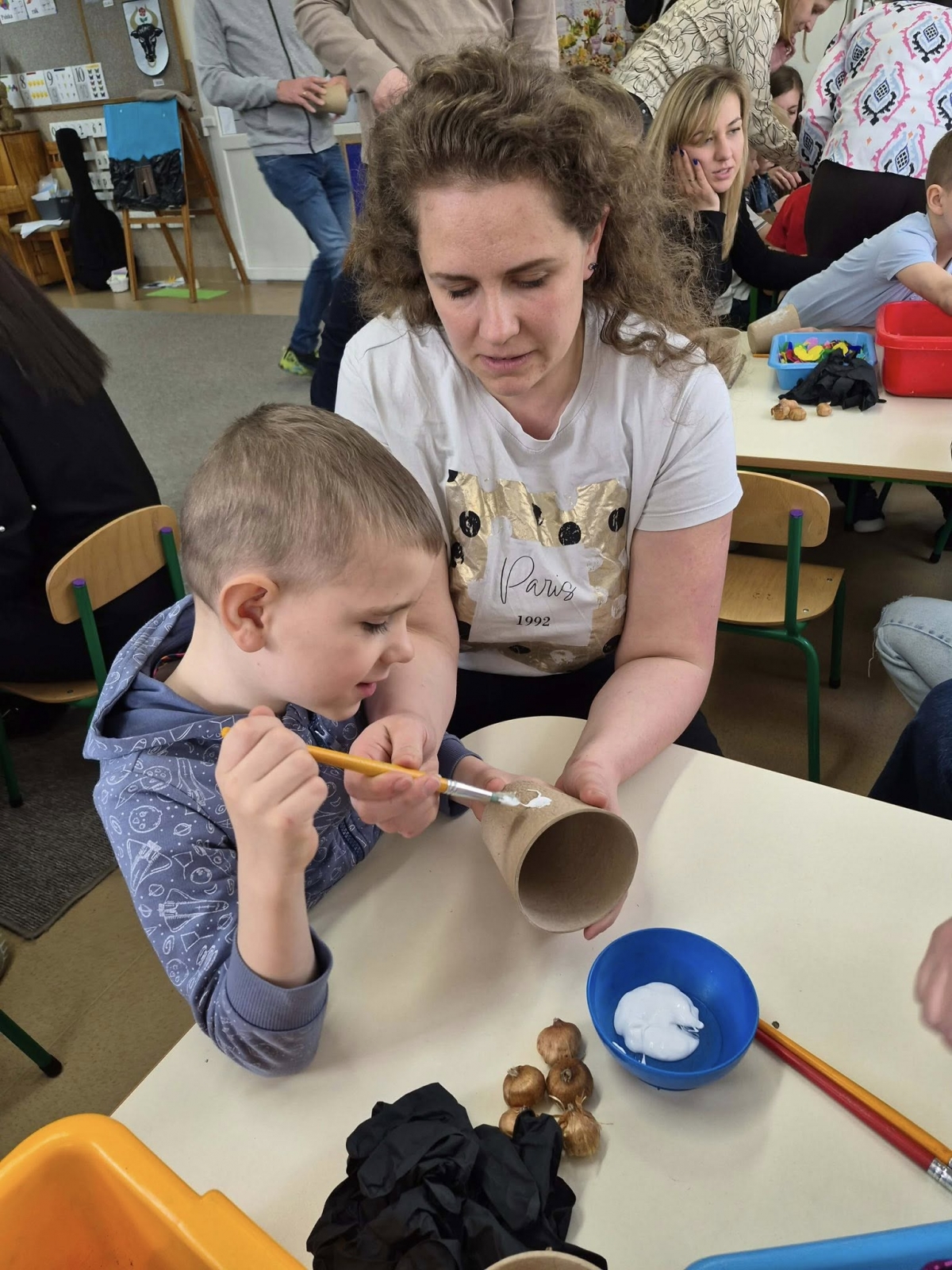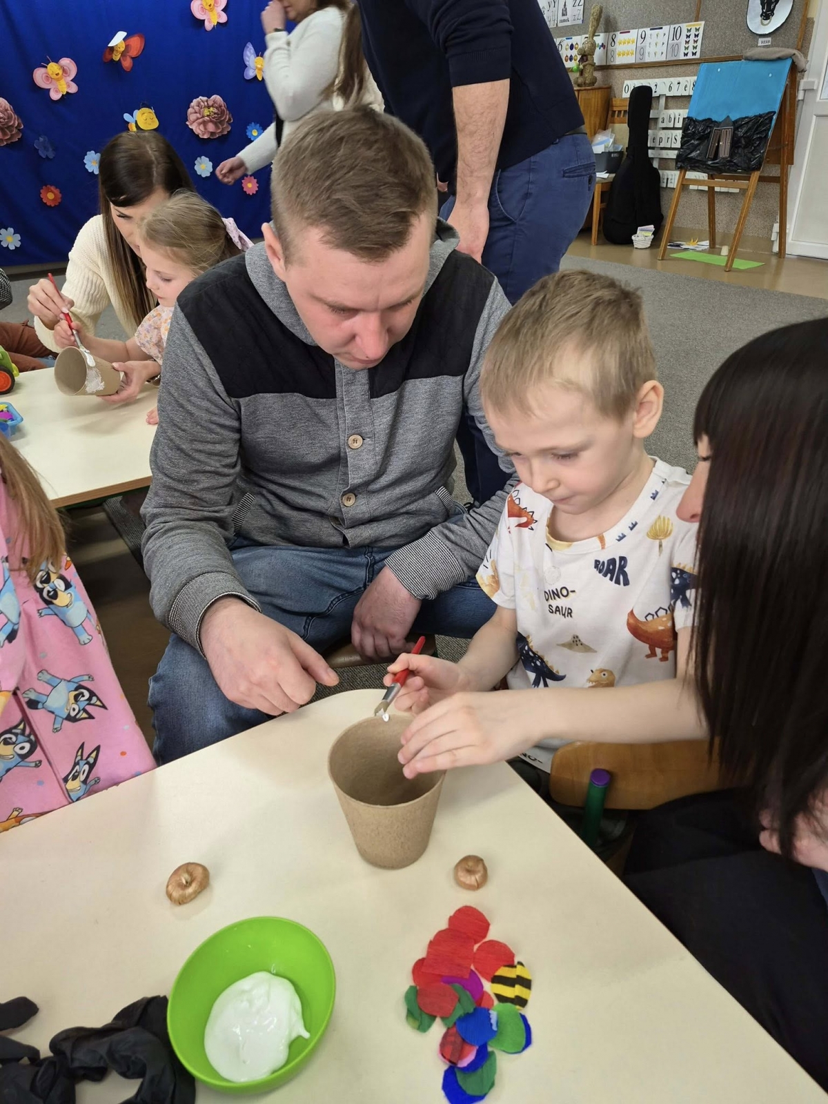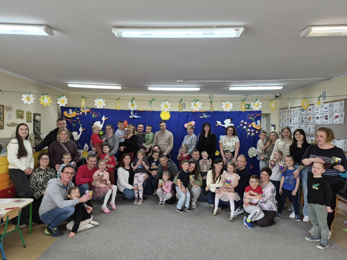 Podczas zabawy rodzice wcielili się w rolę ogrodników, a dzieci w kwiaty. Na zakończenie wspólnie posadziliśmy cebulki i zobowiązaliśmy się do ich pielęgnacji oraz sprawdzenia, jaki kolor będą miały kwiaty po wykiełkowaniu.