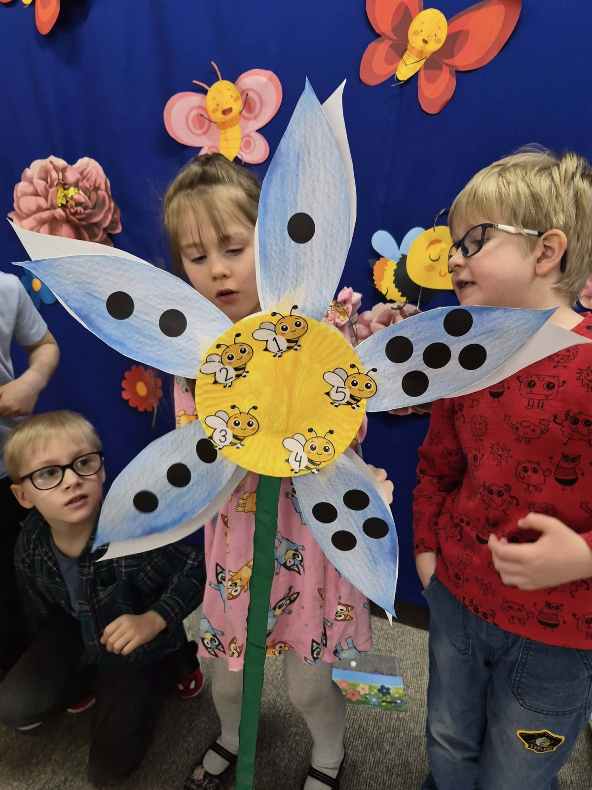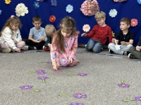 W dniu 31 marca w grupie starszaków odbyły się zajęcia otwarte z udziałem rodziców. Rozpoczęliśmy od opowiadania o żółtym tulipanie, a następnie dzieci liczyły kwiaty i pomagały pszczółkom trafić do odpowiednich płatków.