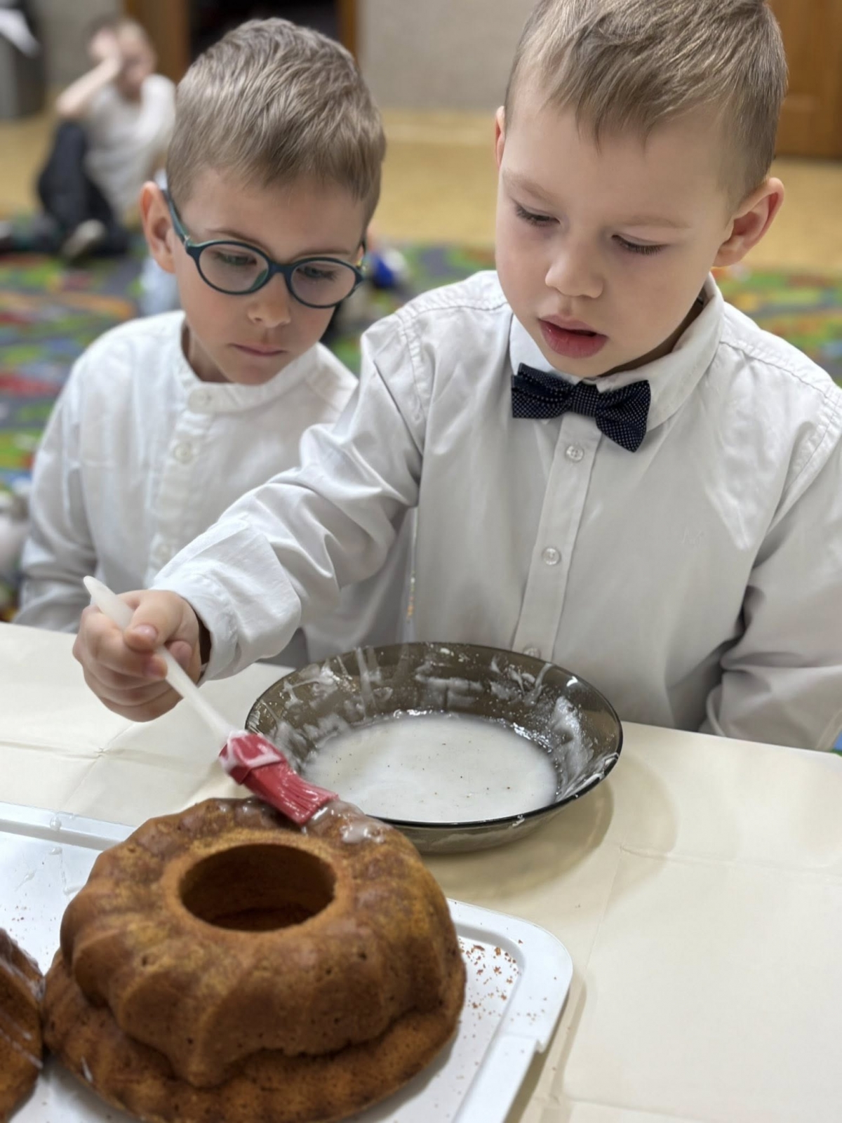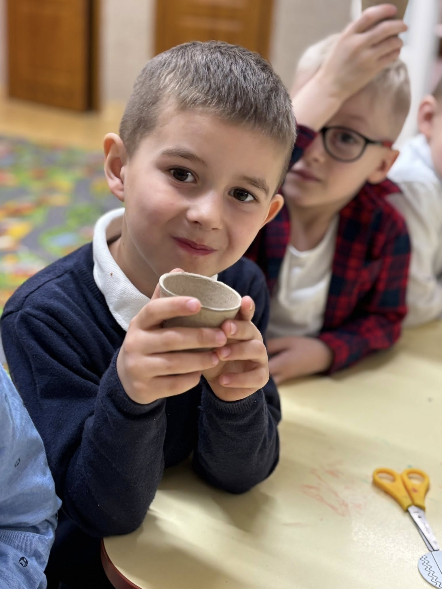 Starszaki rozpoczęły przygotowania do Wielkanocy od dekorowania doniczek, ozdabiania babki oraz wysiewania owsa i jadalnych kwiatów. Następnie zasiedliśmy do wspólnego, świątecznego obiadu, który wprowadził wszystkich w radosny nastrój.