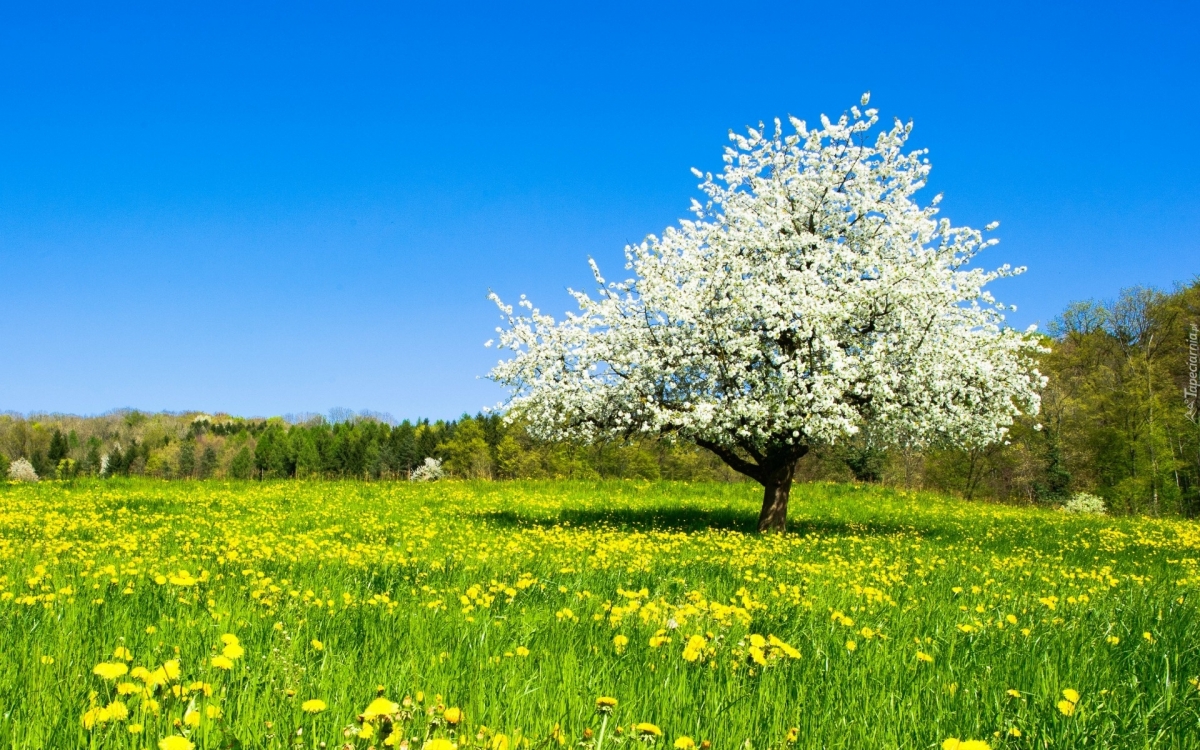 A toż śliwy i jabłonie obsypane kwieciem!